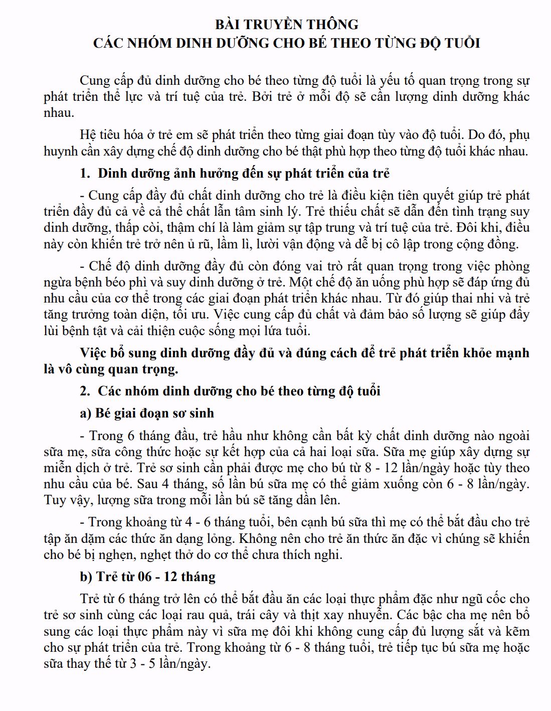 BÀI TRUYỀN THÔNG CÁC NHÓM DINH DƯỠNG CHO BÉ THEO TỪNG ĐỘ TUỔI 28/11/2025 0 56 FacebookTwitterPinterestWhatsApp