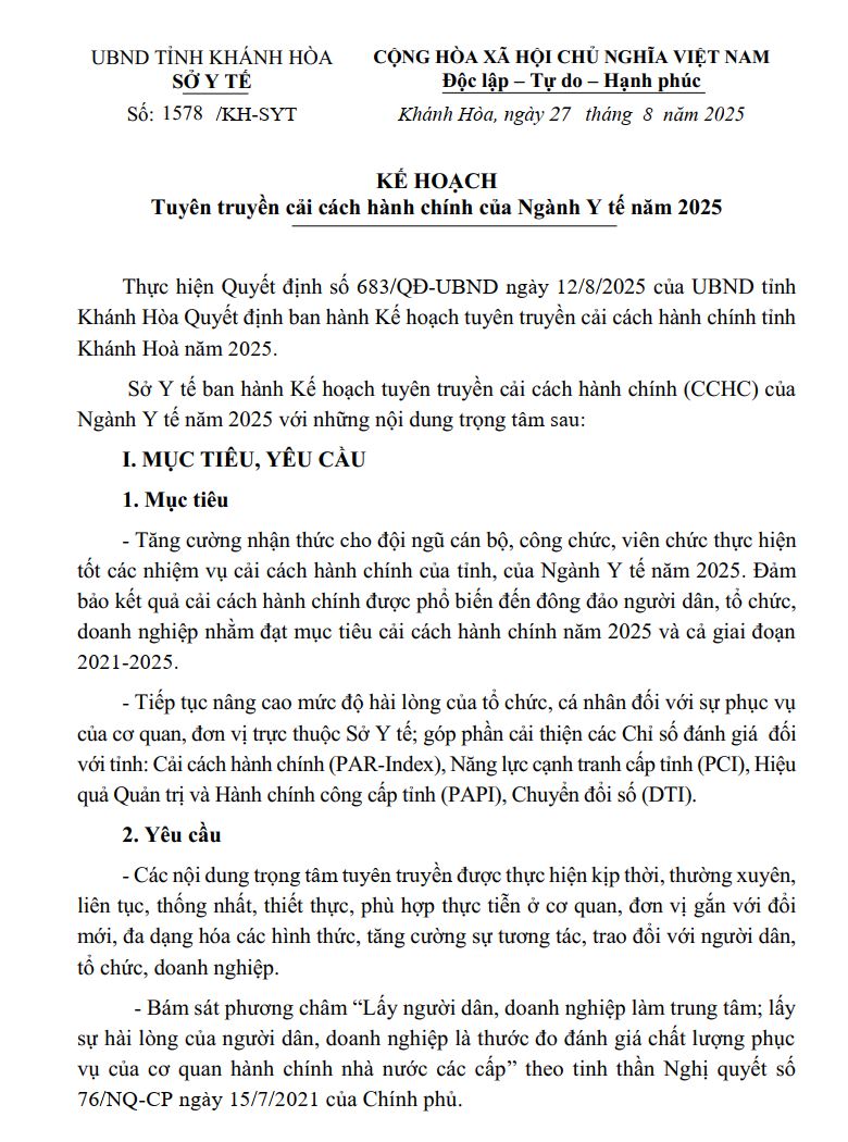KẾ HOẠCH Tuyên truyền cải cách hành chính của Ngành Y tế năm 2025