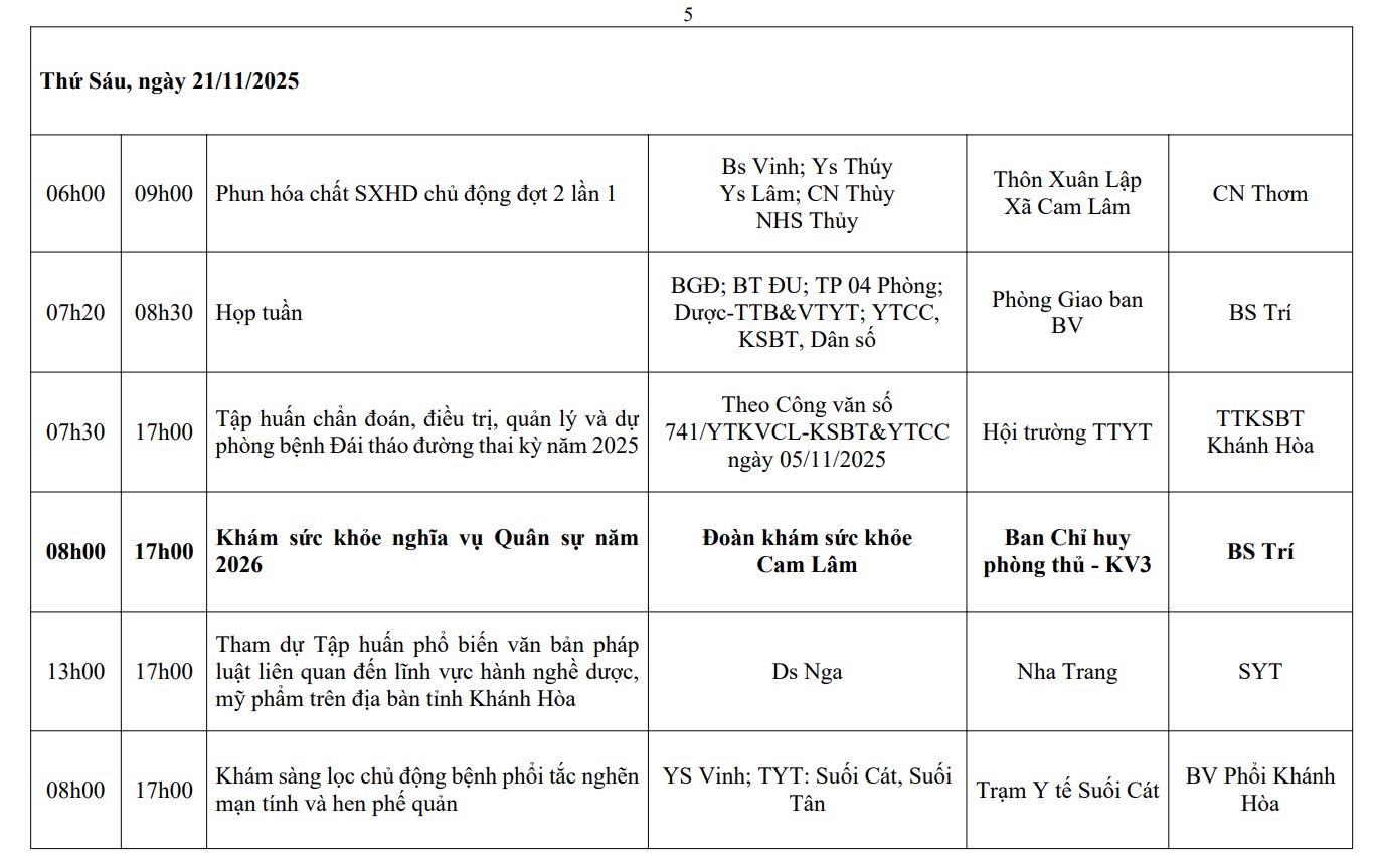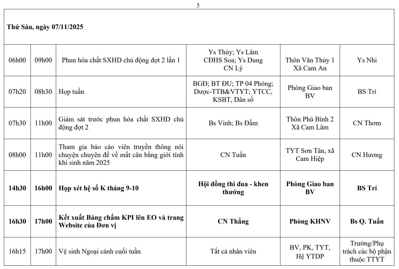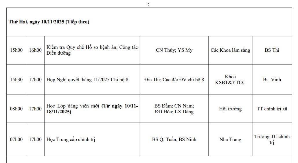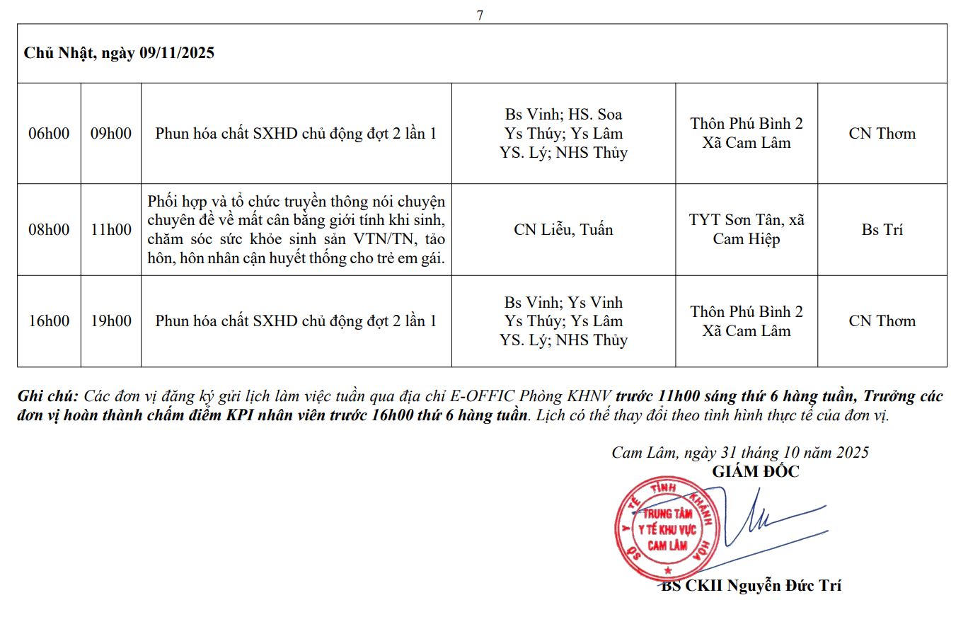LỊCH CÔNG TÁC TUẦN THỨ 45 (2025)