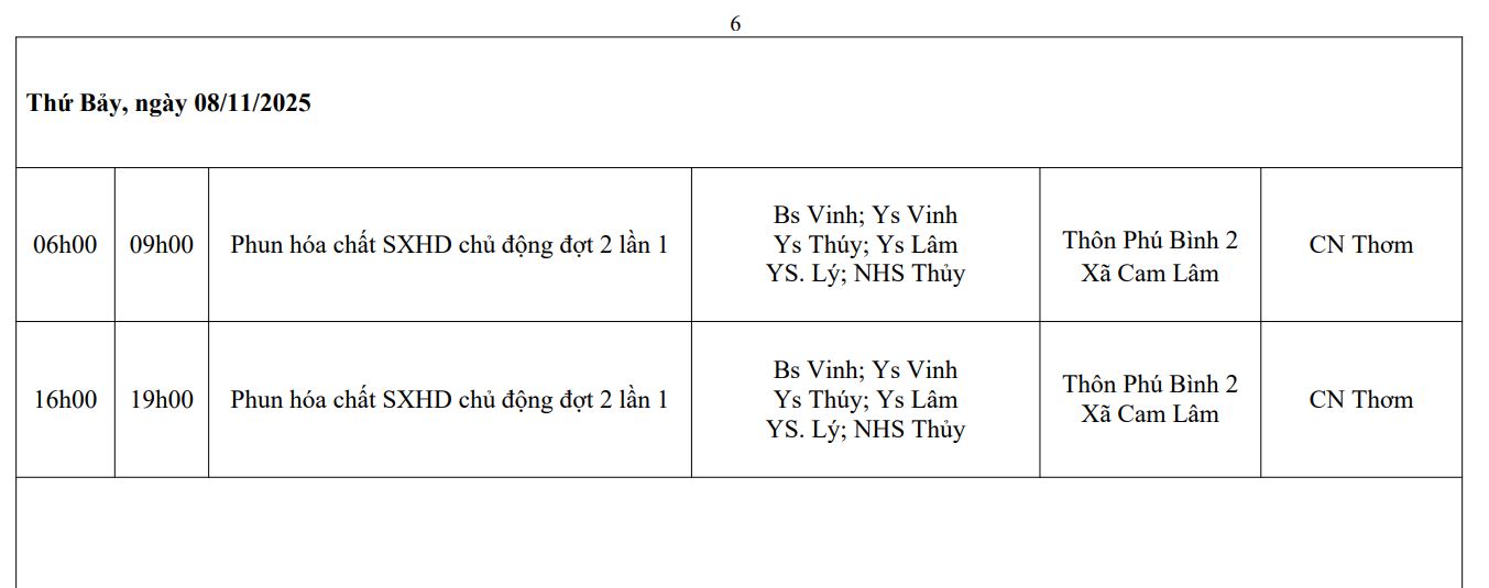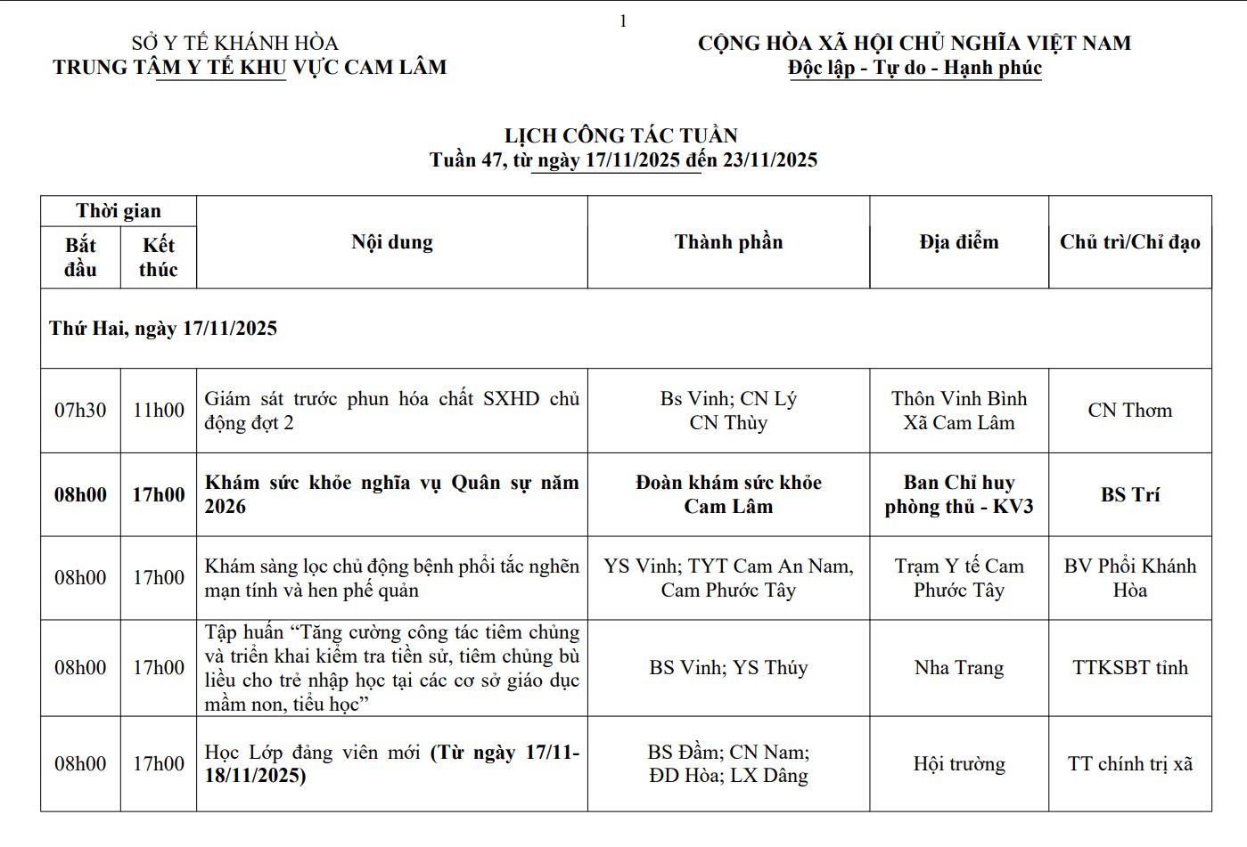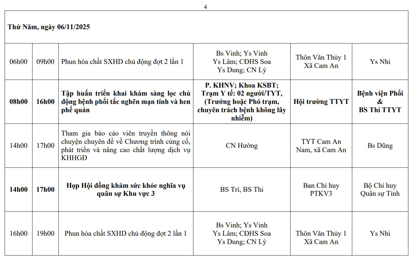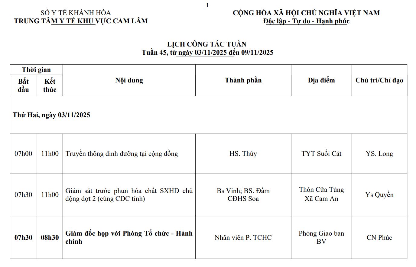 LỊCH CÔNG TÁC TUẦN THỨ 45 (2025)