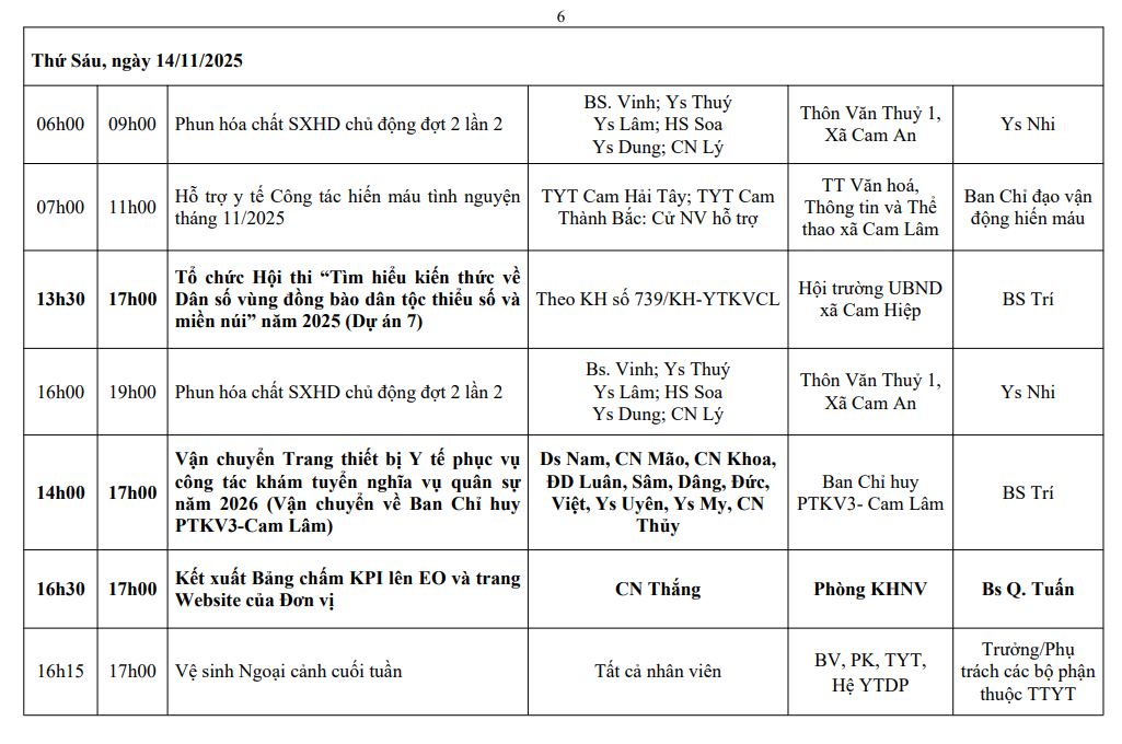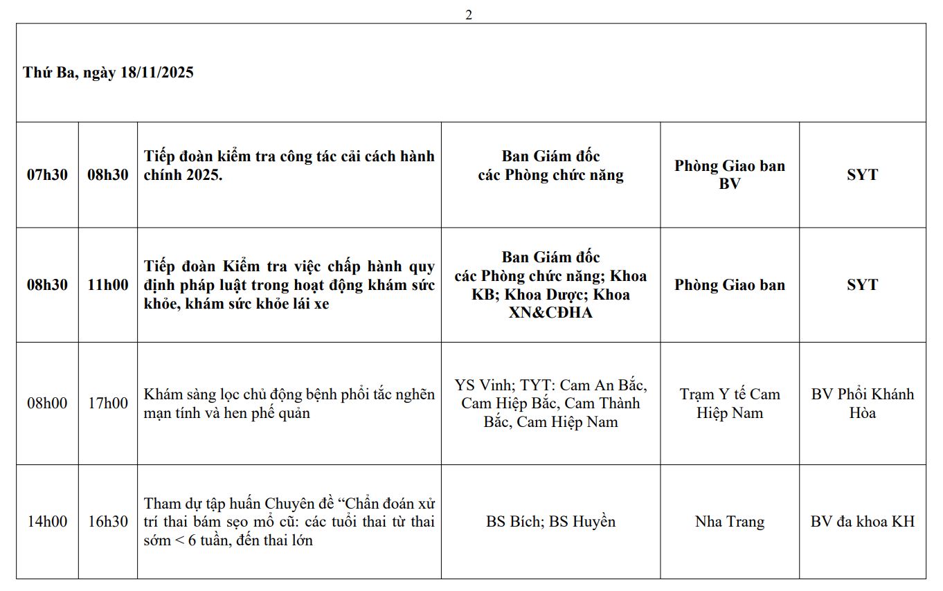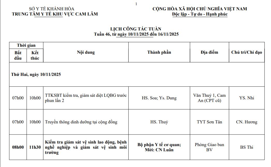 LỊCH CÔNG TÁC TUẦN THỨ 46 (2025)