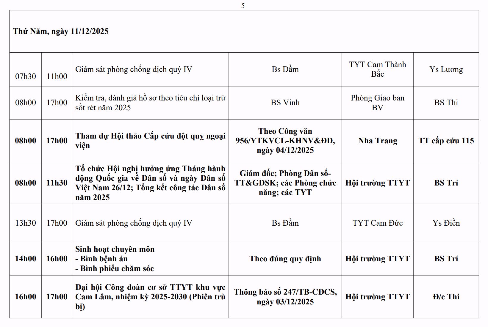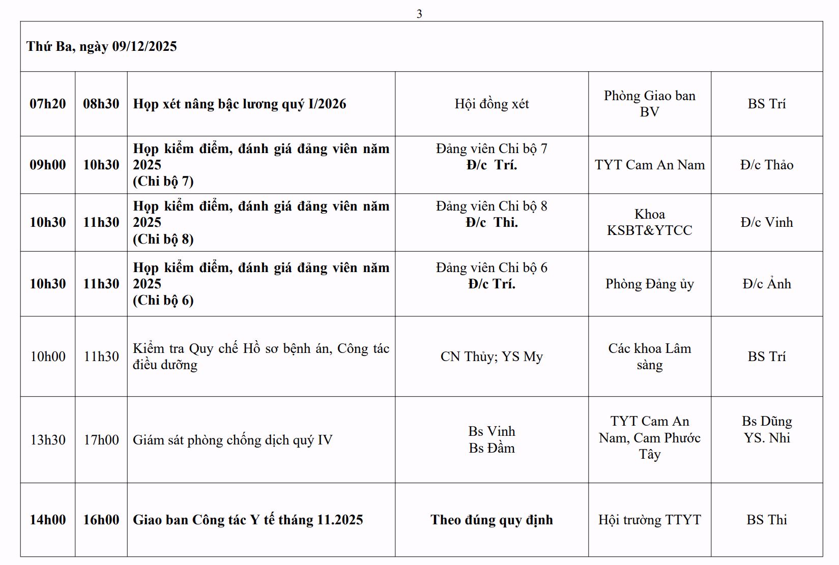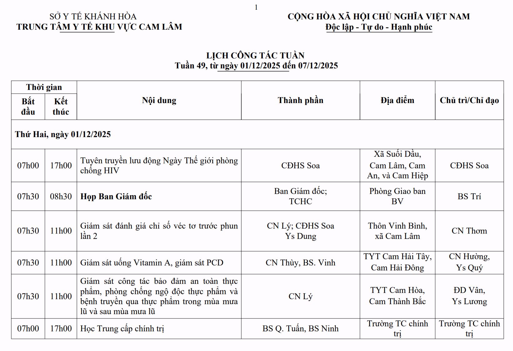 LỊCH CÔNG TÁC TUẦN THỨ 49 (2025)