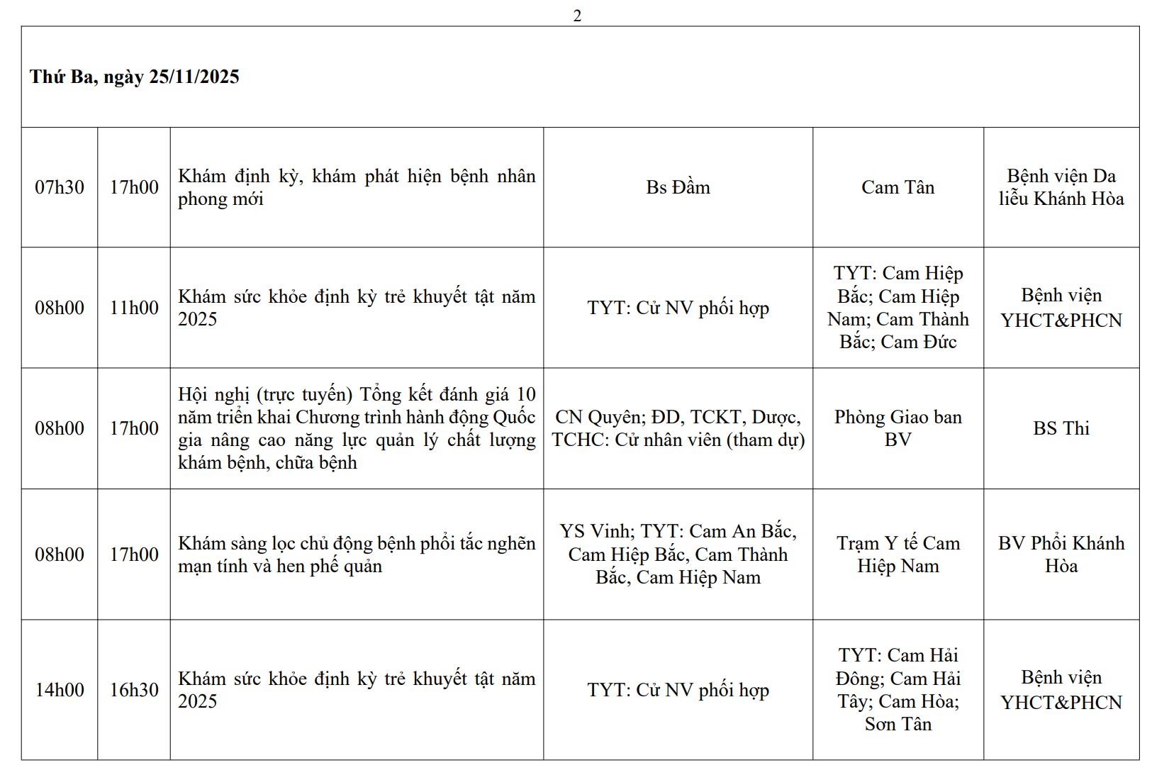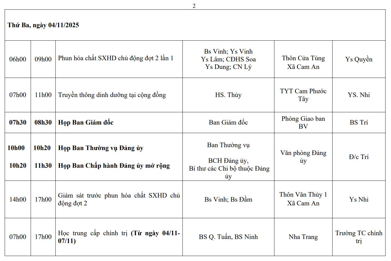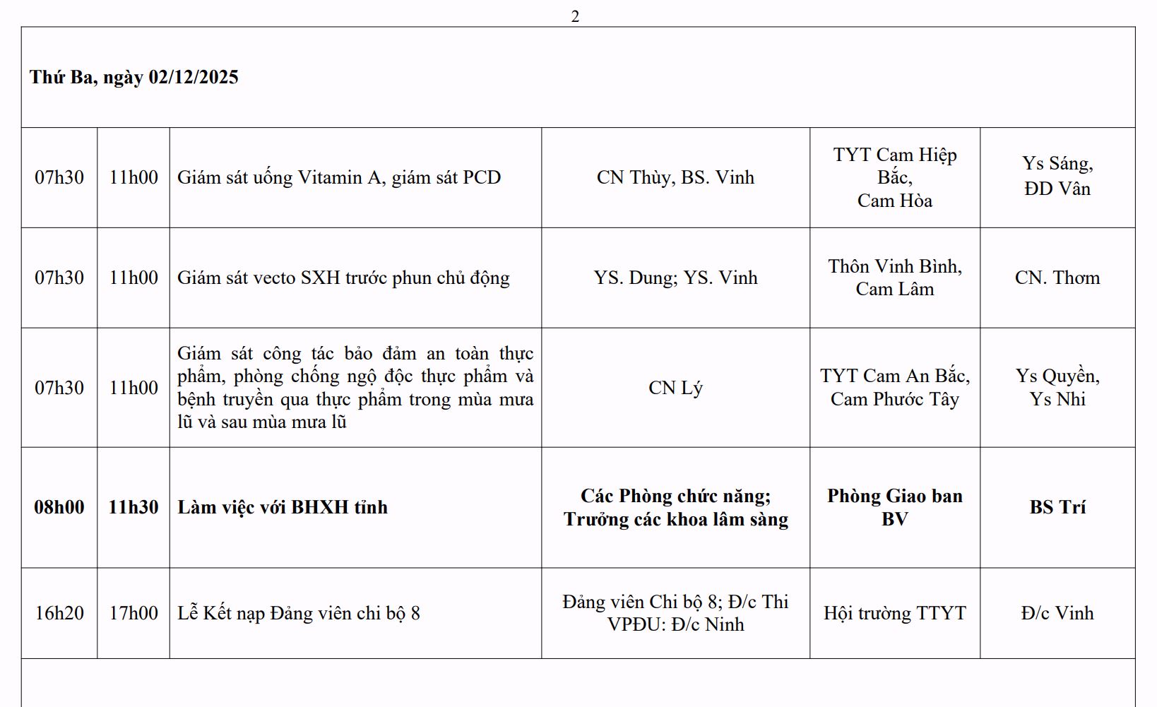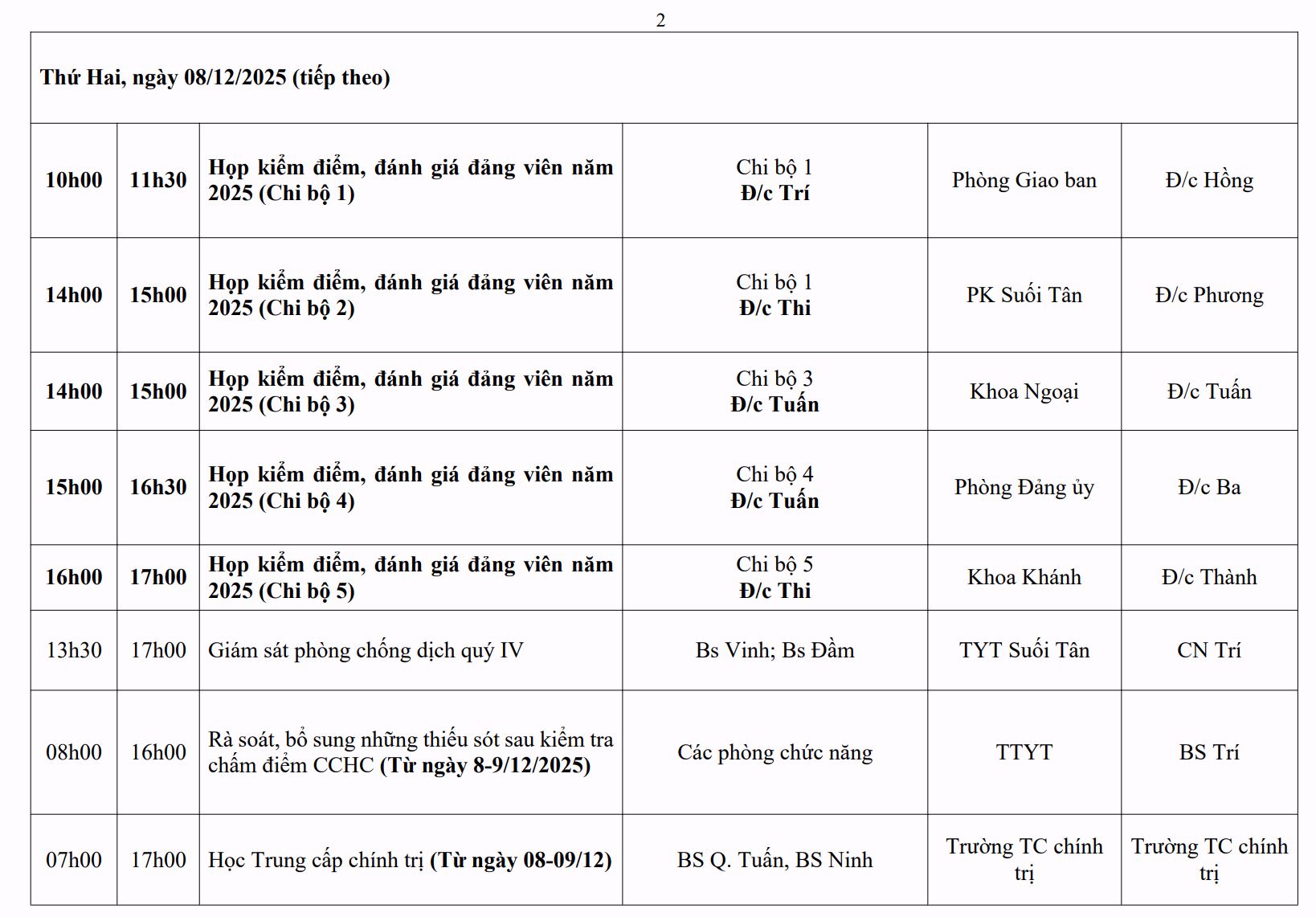 LỊCH CÔNG TÁC TUẦN THỨ 2 (2025)