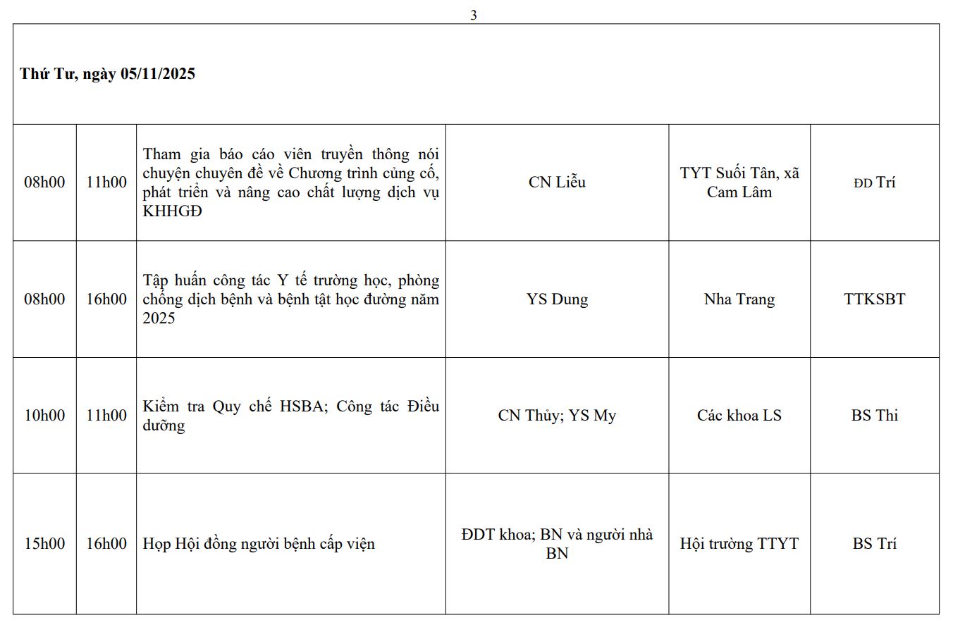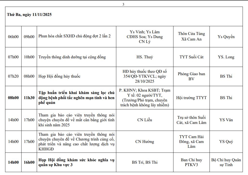 LỊCH CÔNG TÁC TUẦN THỨ 11 (2025)