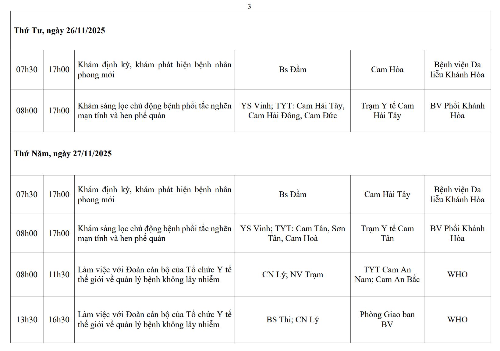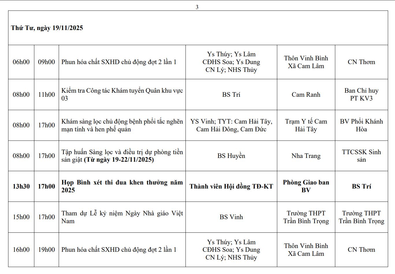 LỊCH CÔNG TÁC TUẦN THỨ 3 (2025)