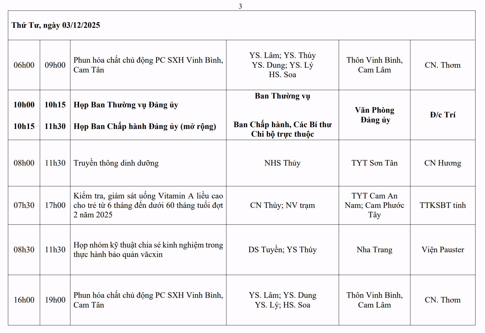 LỊCH CÔNG TÁC TUẦN THỨ 12 (2025)