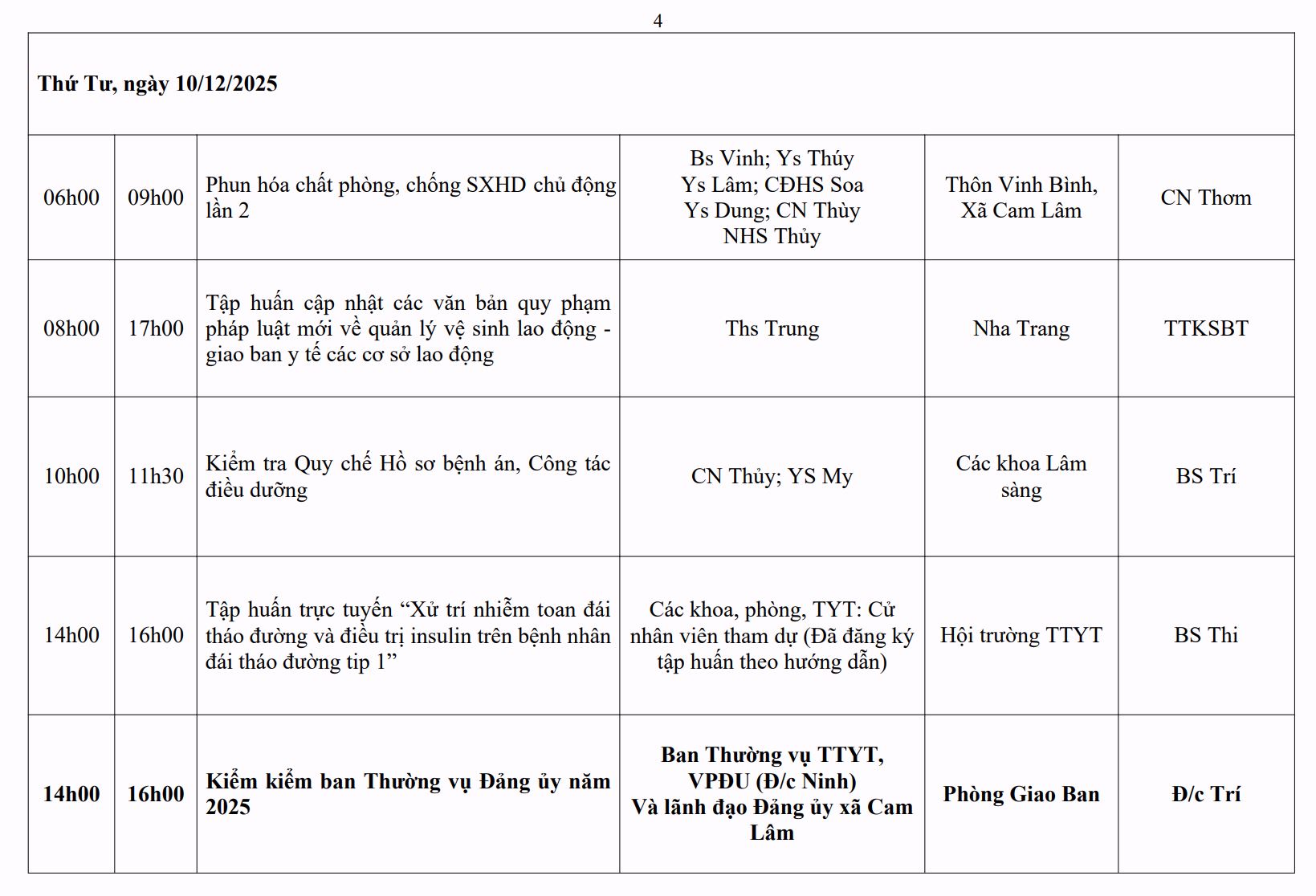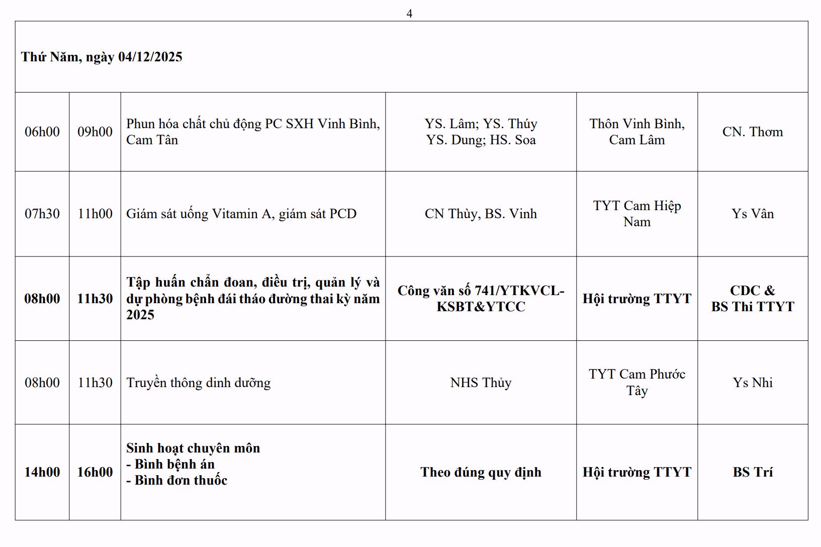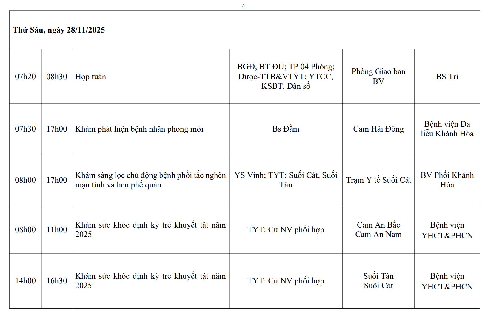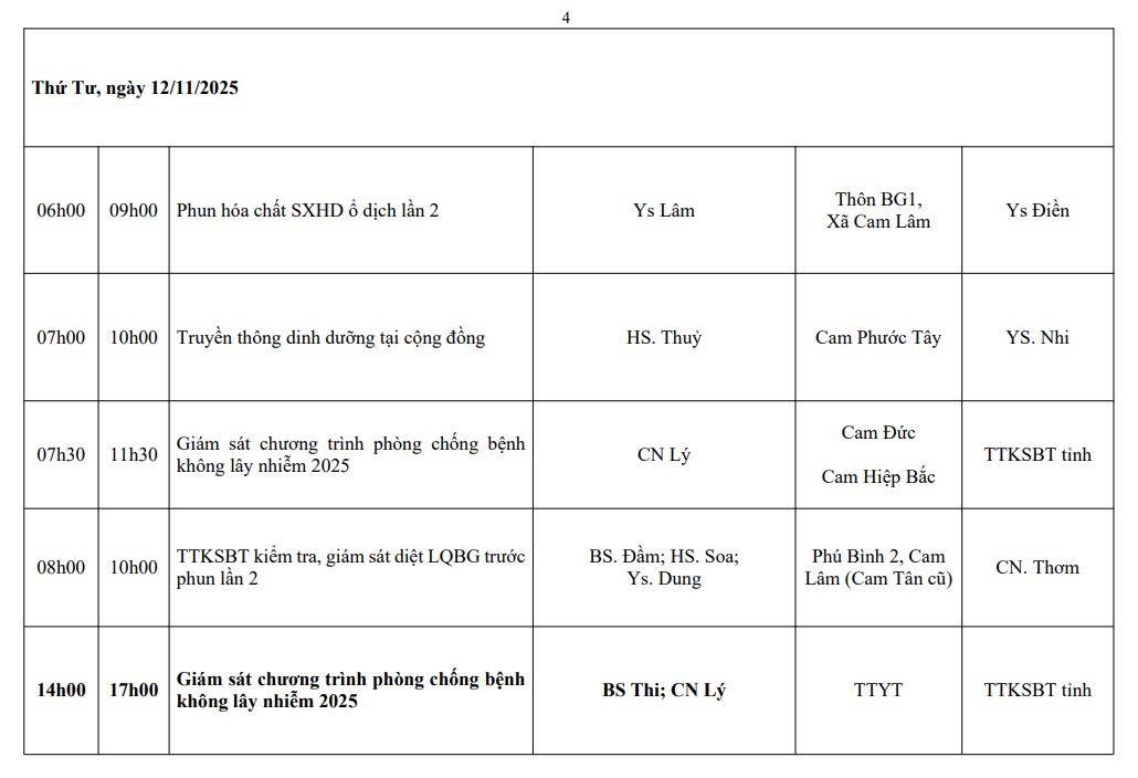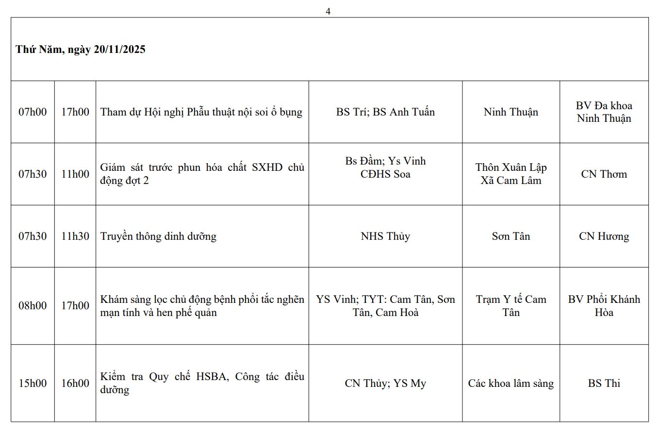 LỊCH CÔNG TÁC TUẦN THỨ 4 (2025)