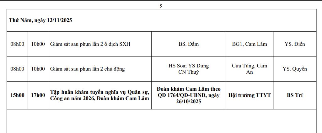 LỊCH CÔNG TÁC TUẦN THỨ 13 (2025)