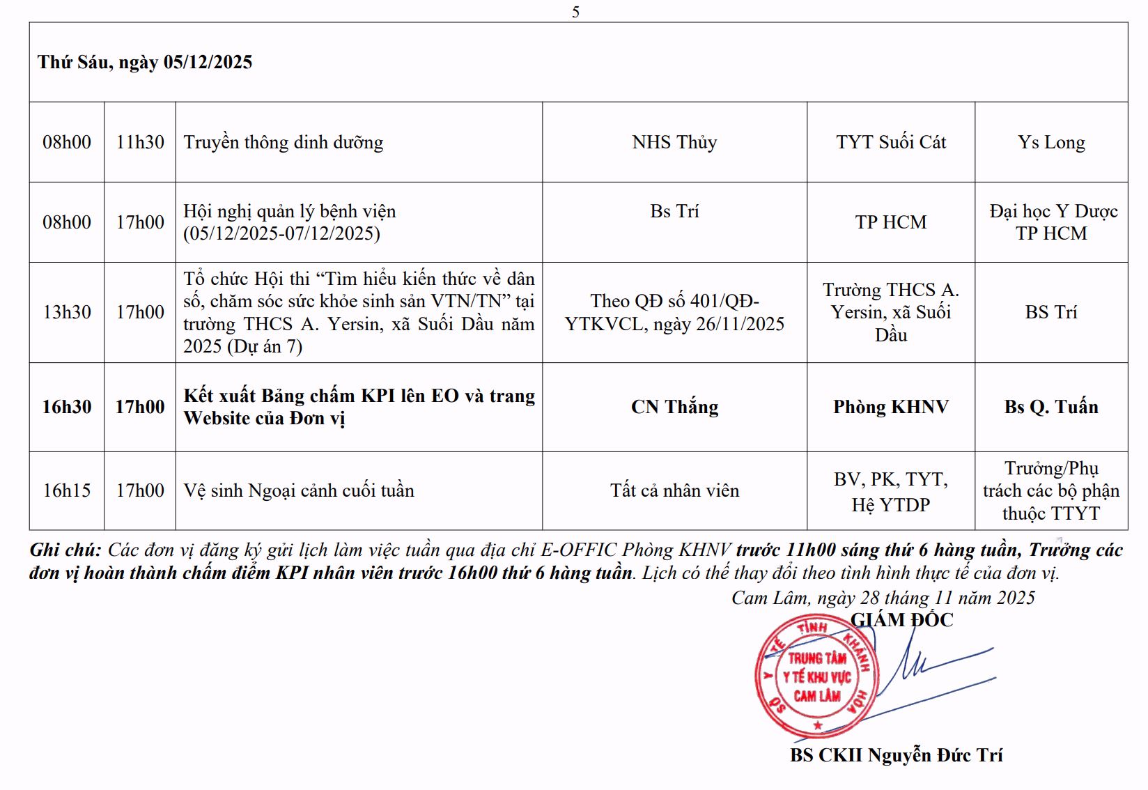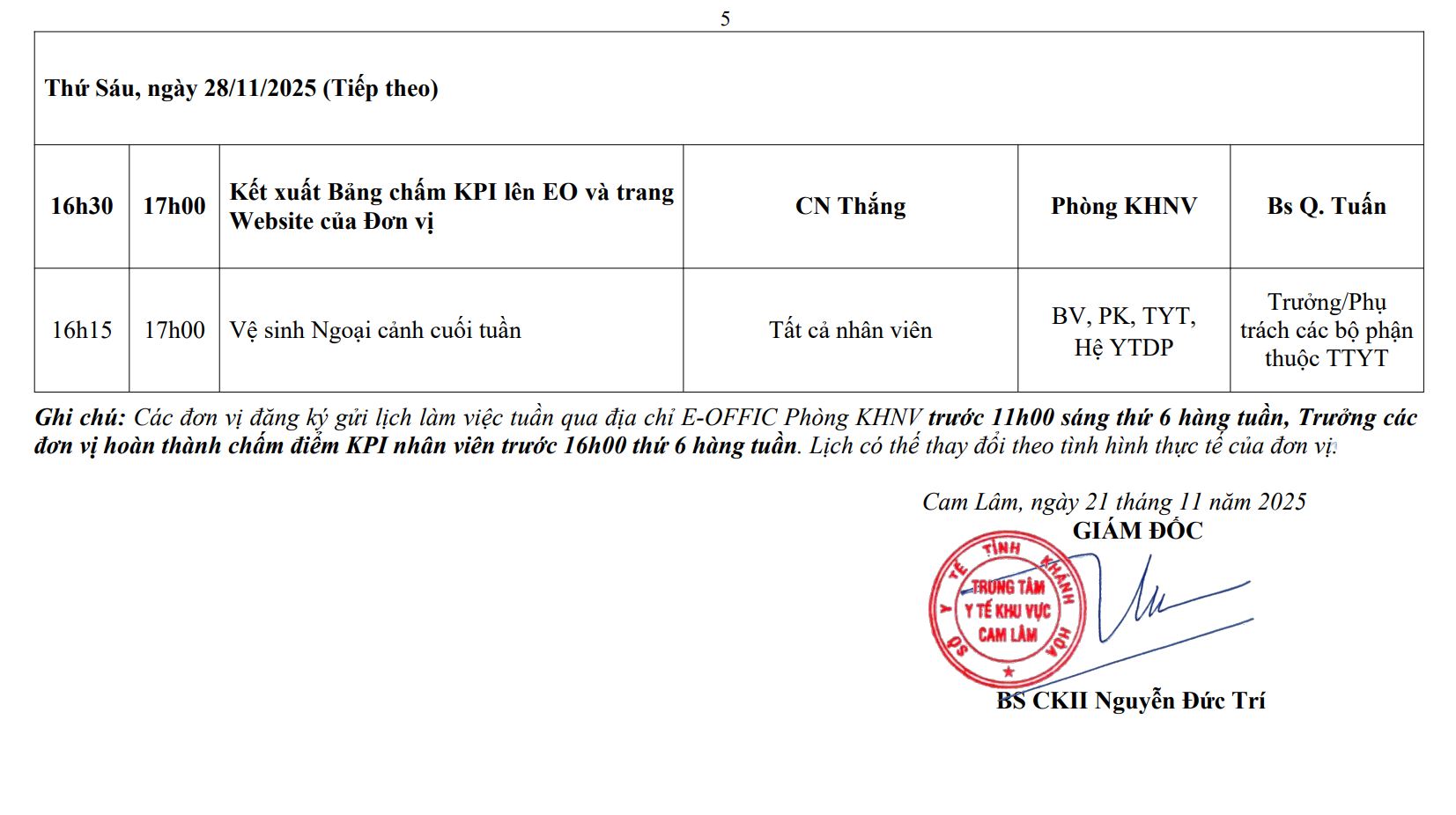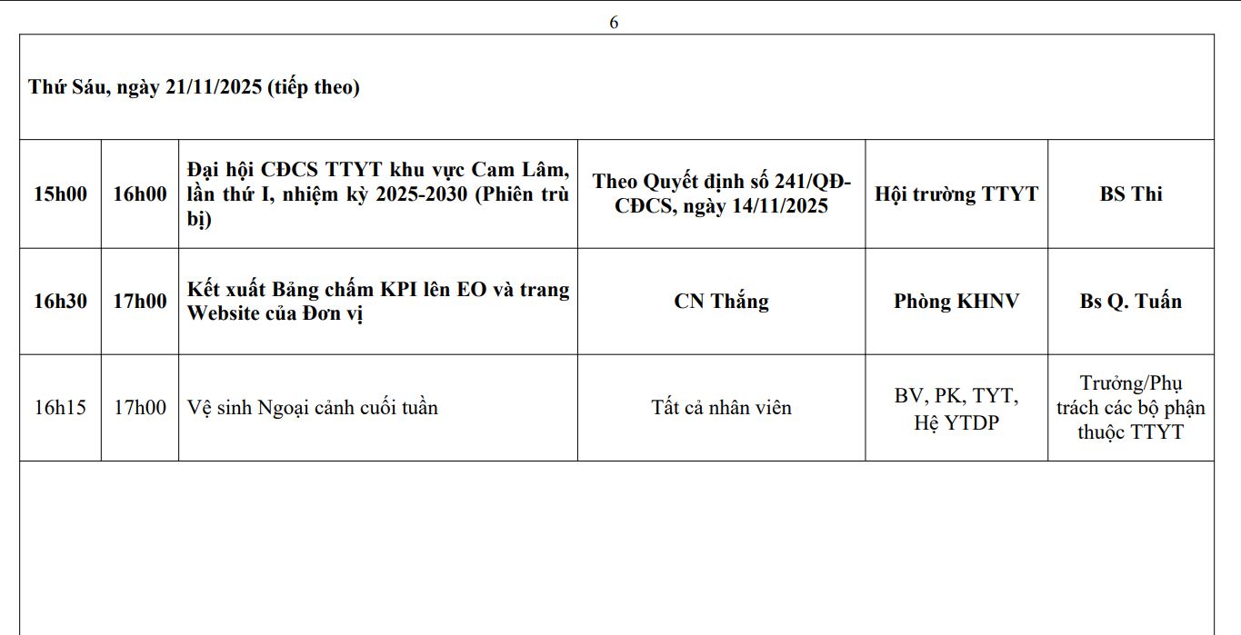 LỊCH CÔNG TÁC TUẦN THỨ 44 (2025)
