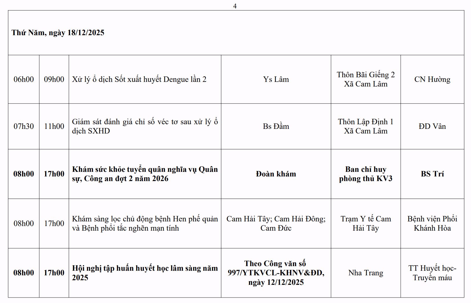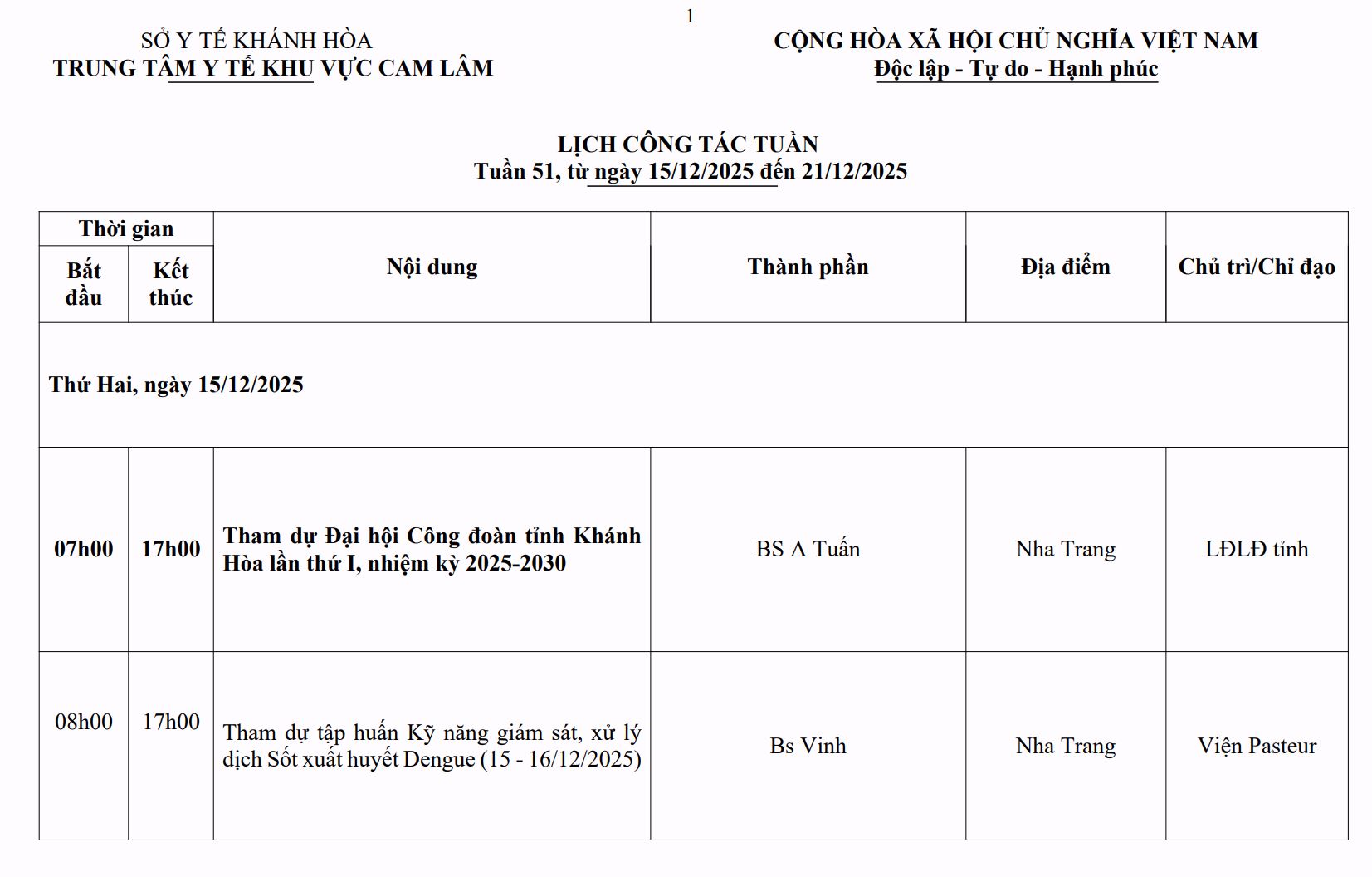 LỊCH CÔNG TÁC TUẦN THỨ 51 (2025)