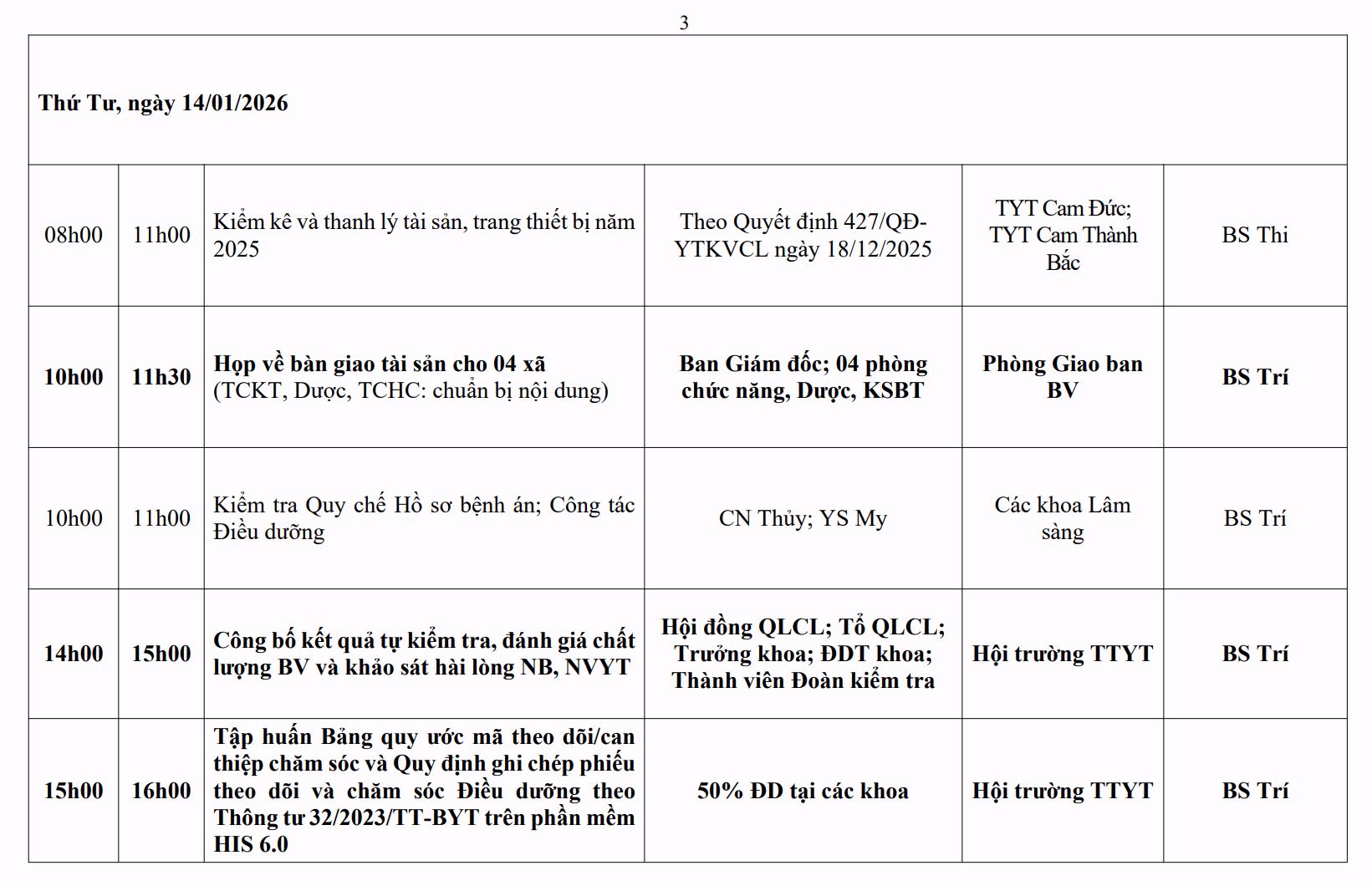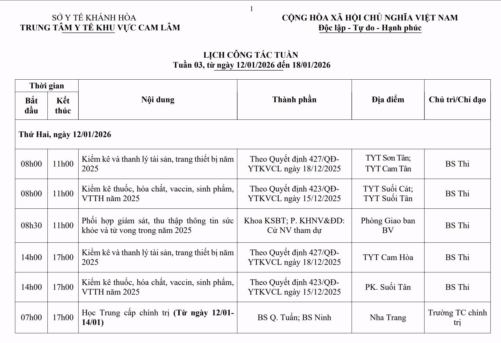 LỊCH CÔNG TÁC TUẦN THỨ 3 (2026)