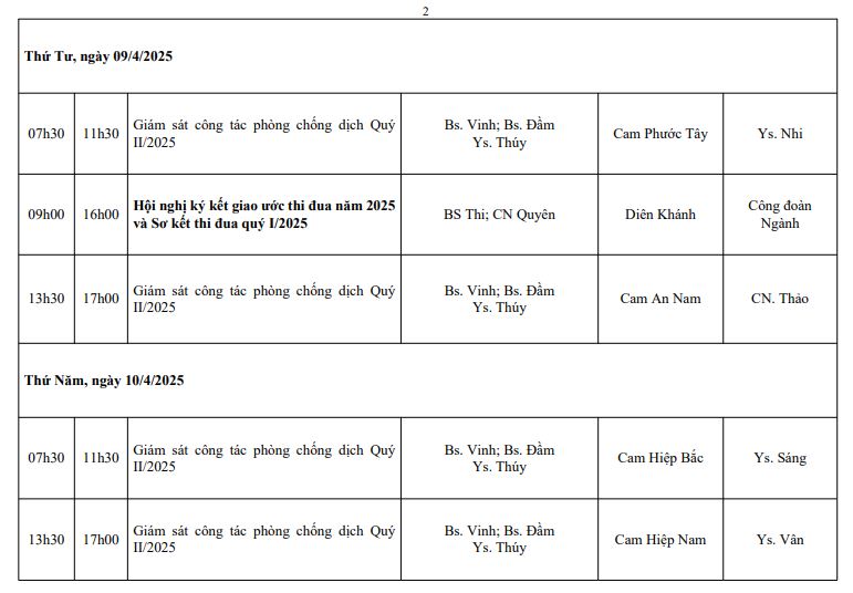 LỊCH CÔNG TÁC TUẦN THỨ 2 (2025)