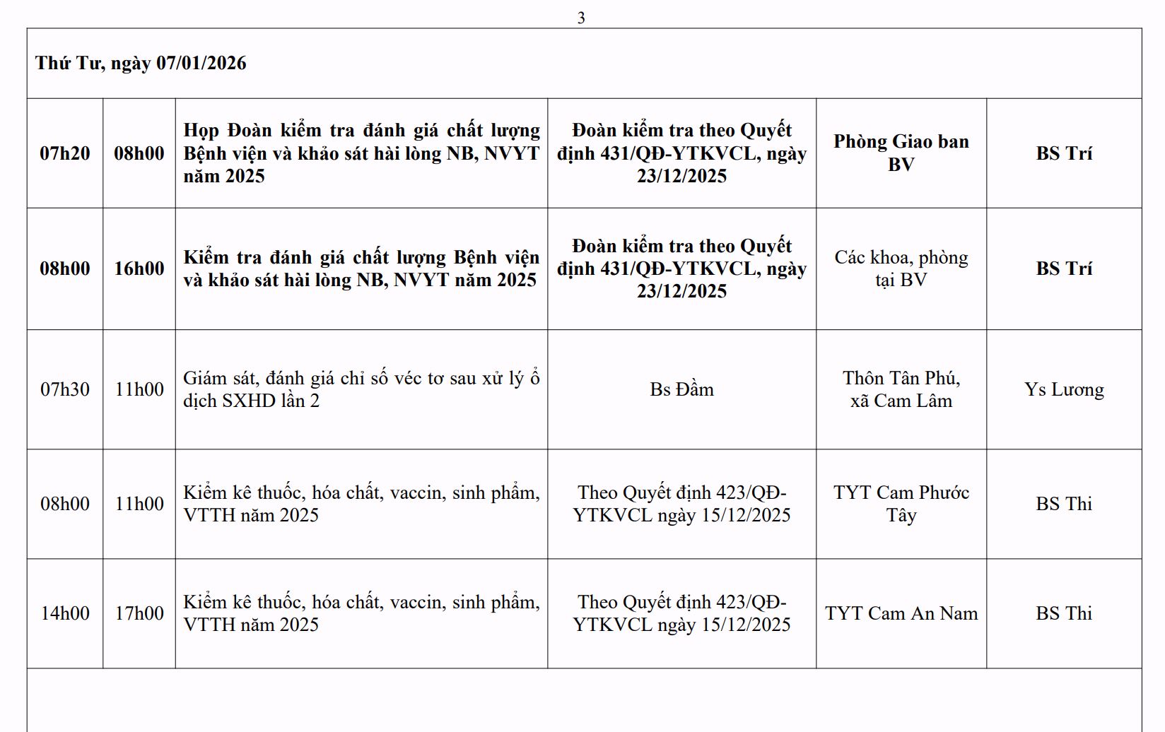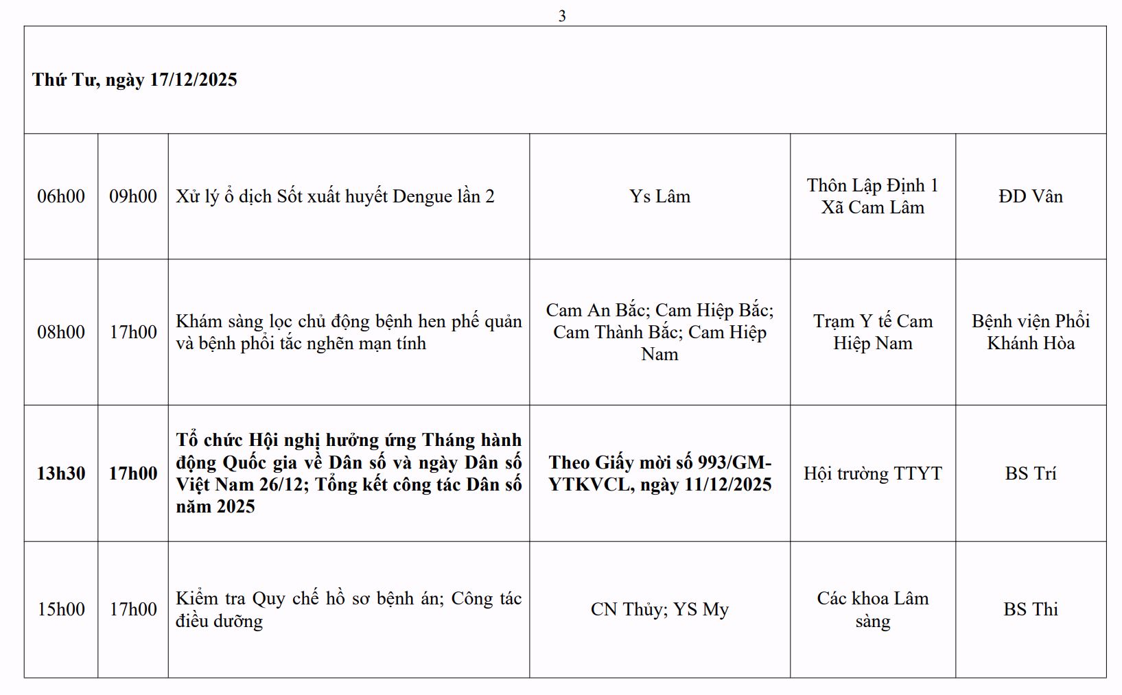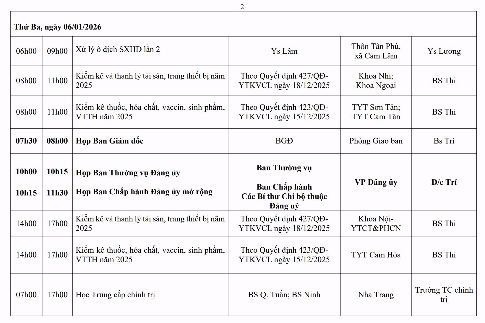 LỊCH CÔNG TÁC TUẦN THỨ 52 (2025)
