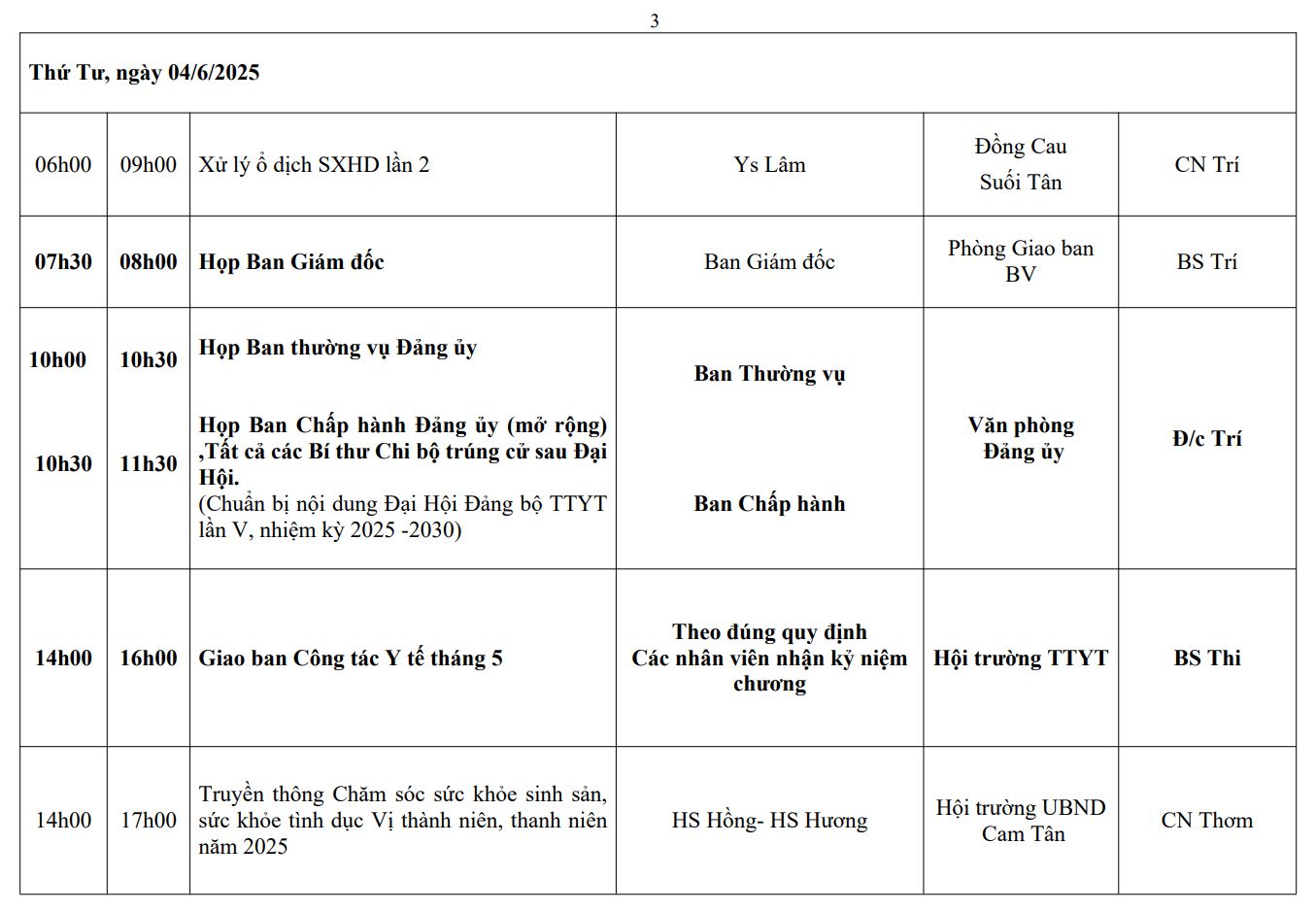 LỊCH CÔNG TÁC TUẦN THỨ 10 (2025)