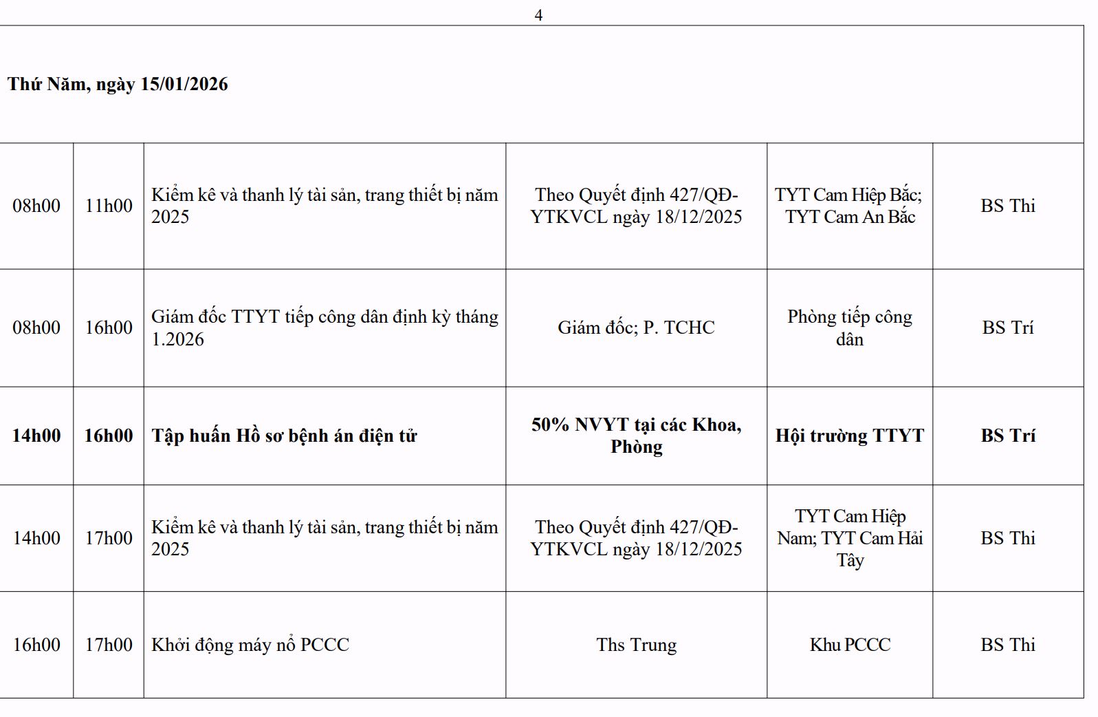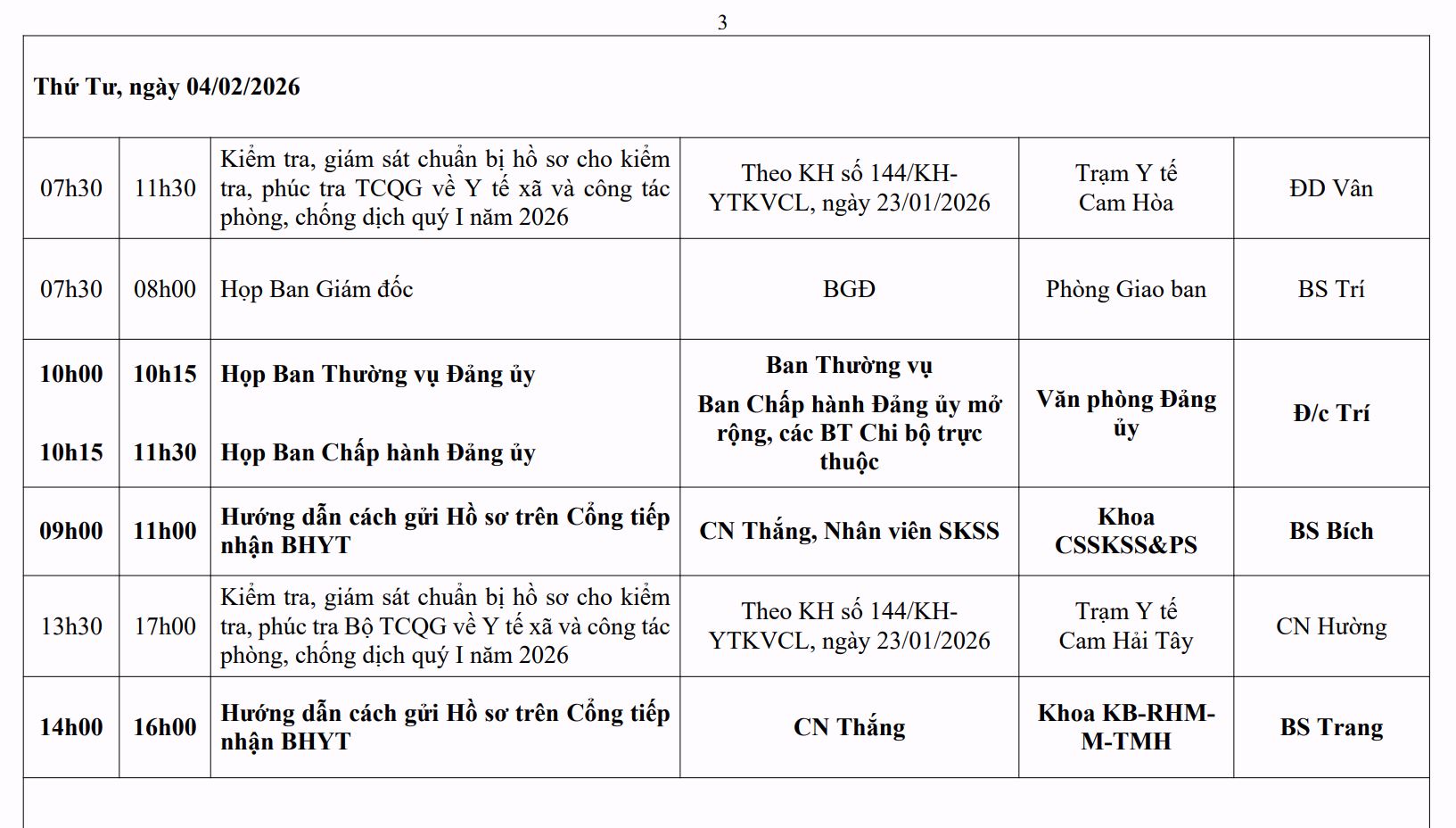 LỊCH CÔNG TÁC TUẦN THỨ 4 (2026)