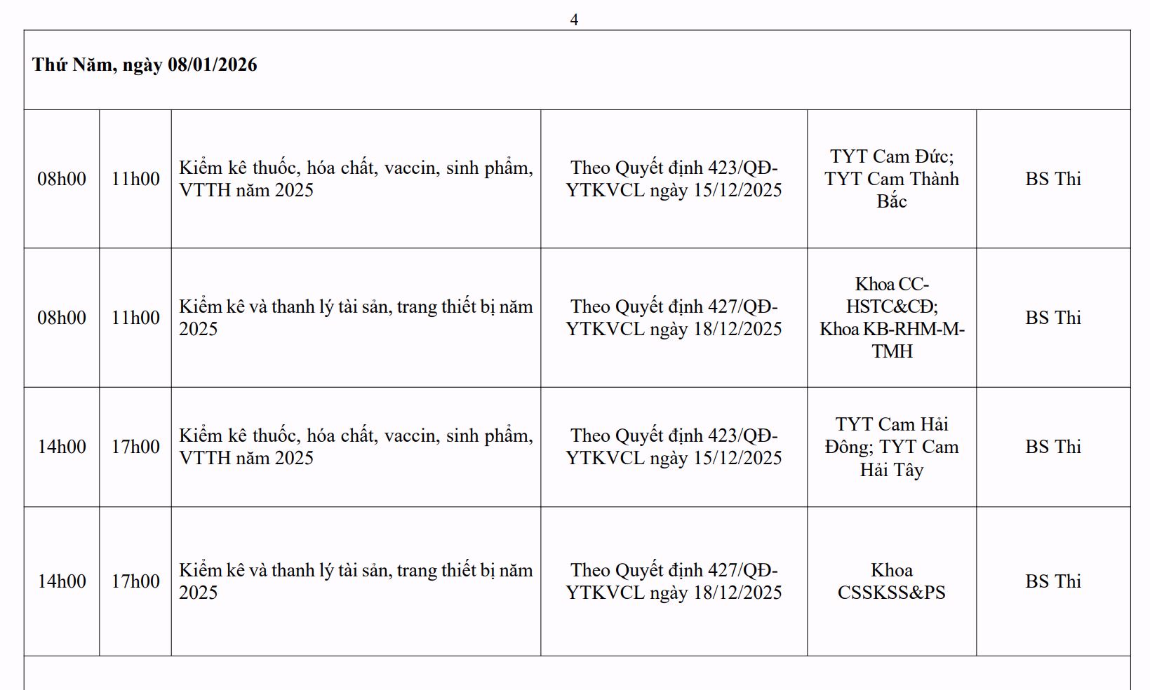 LỊCH CÔNG TÁC TUẦN THỨ 4 (2025)