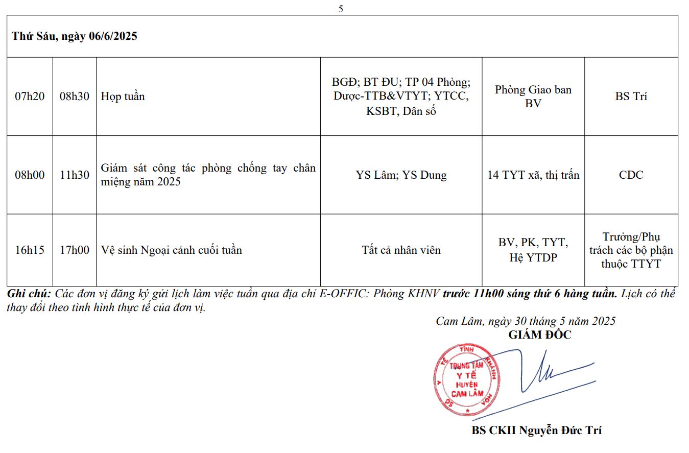 LỊCH CÔNG TÁC TUẦN THỨ 5,6 (2025)