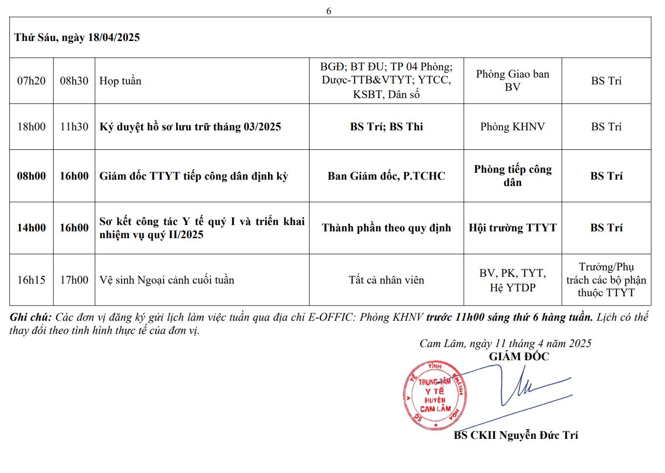 LỊCH CÔNG TÁC TUẦN THỨ 15 (2025)