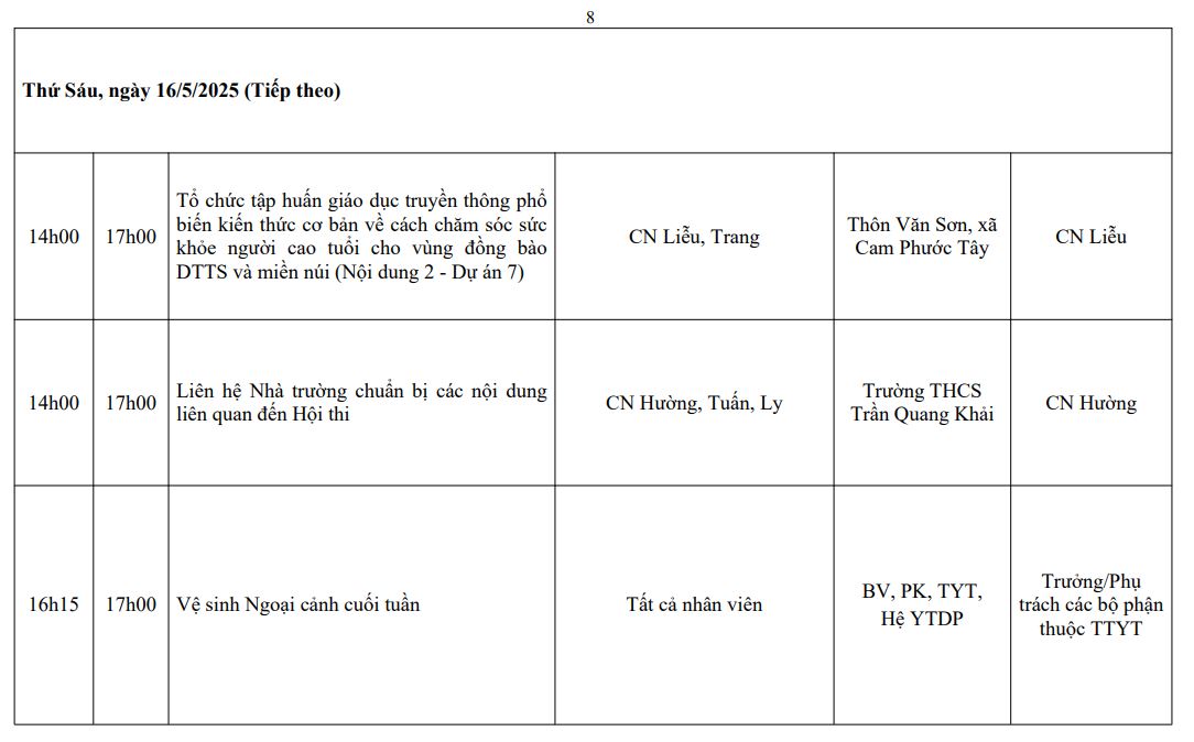 LỊCH CÔNG TÁC TUẦN THỨ 8 (2025)