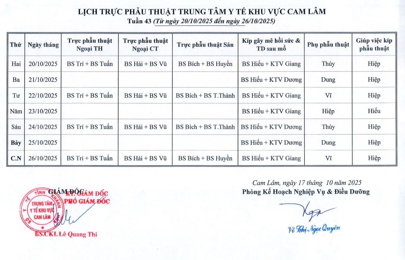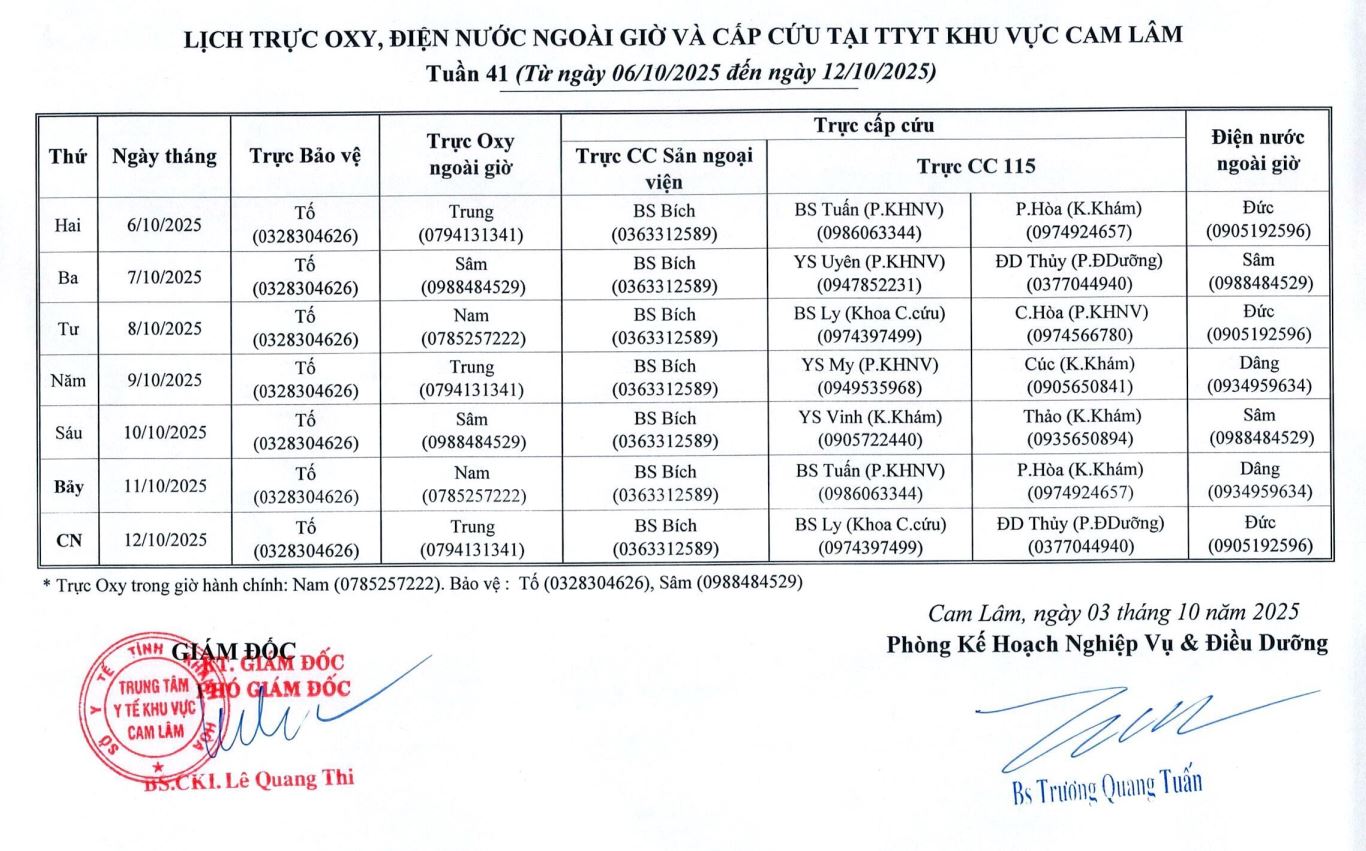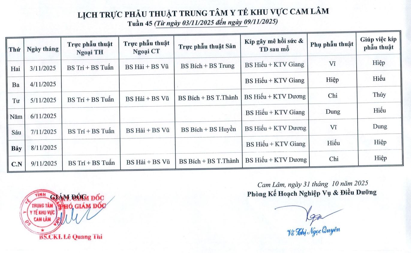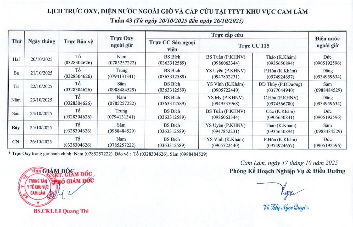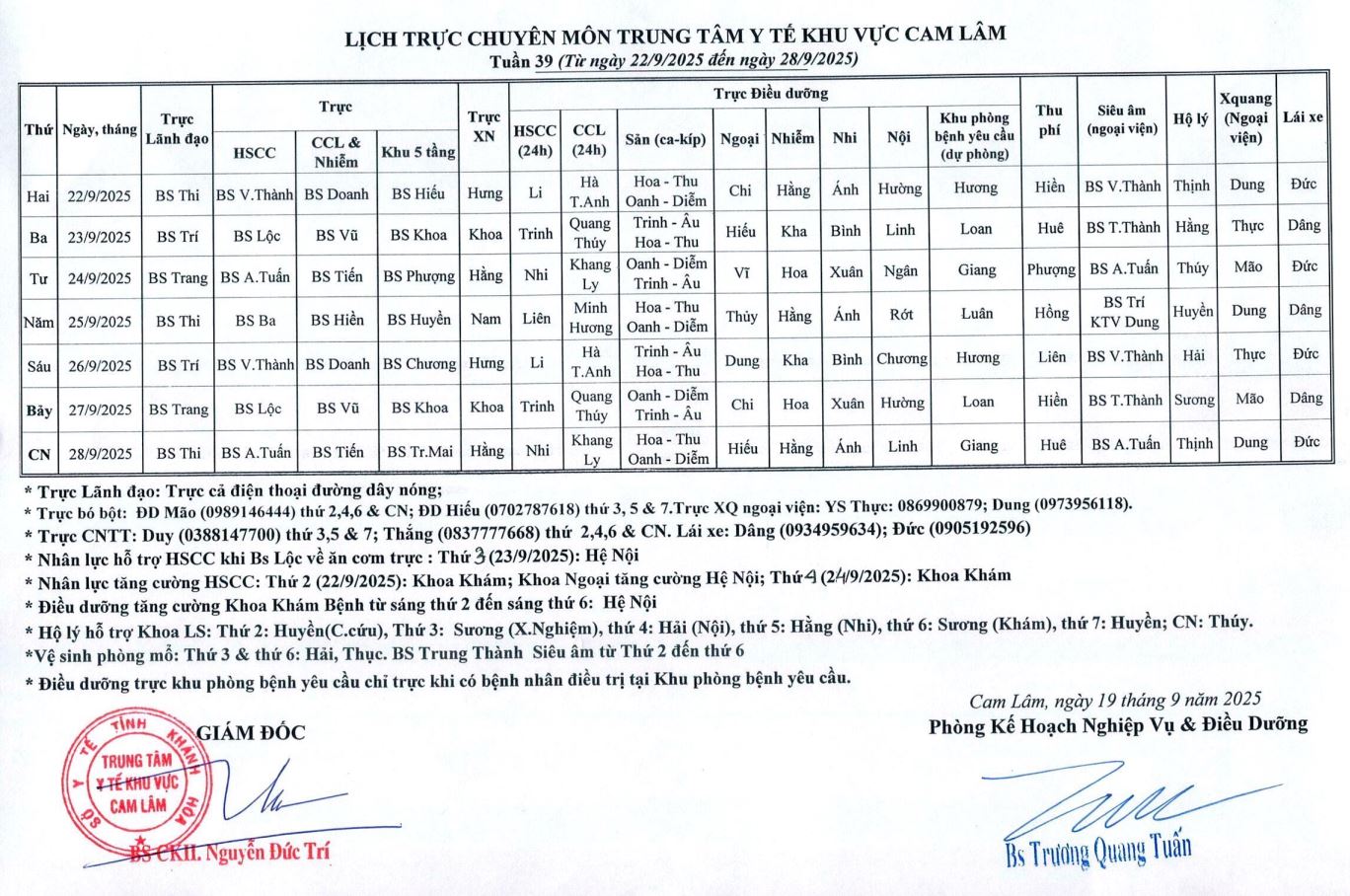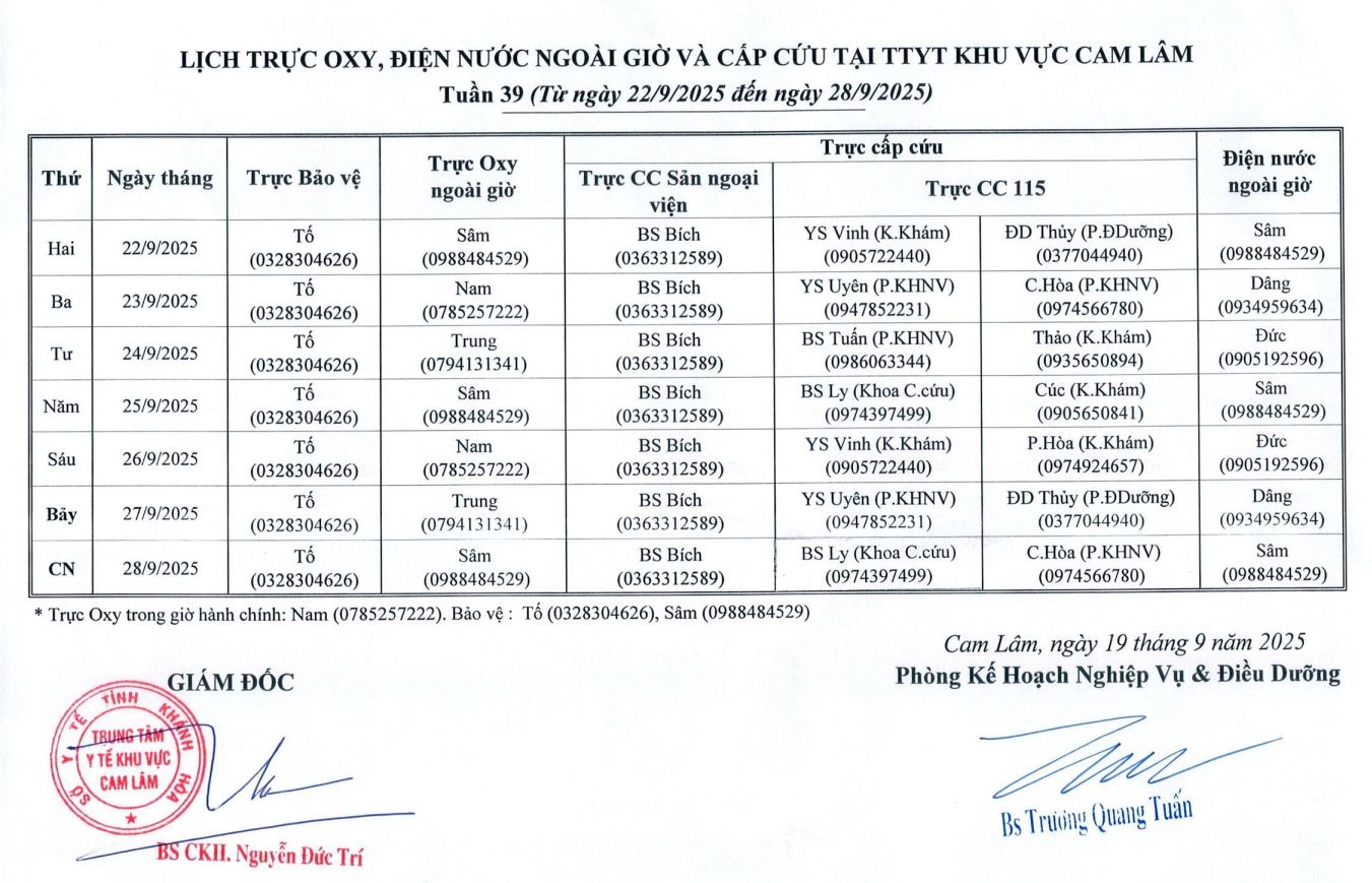 Lịch trực BV dã chiến (TTYT Cam Lâm, Đồng Cau)& LT chuyên môn tuần 35