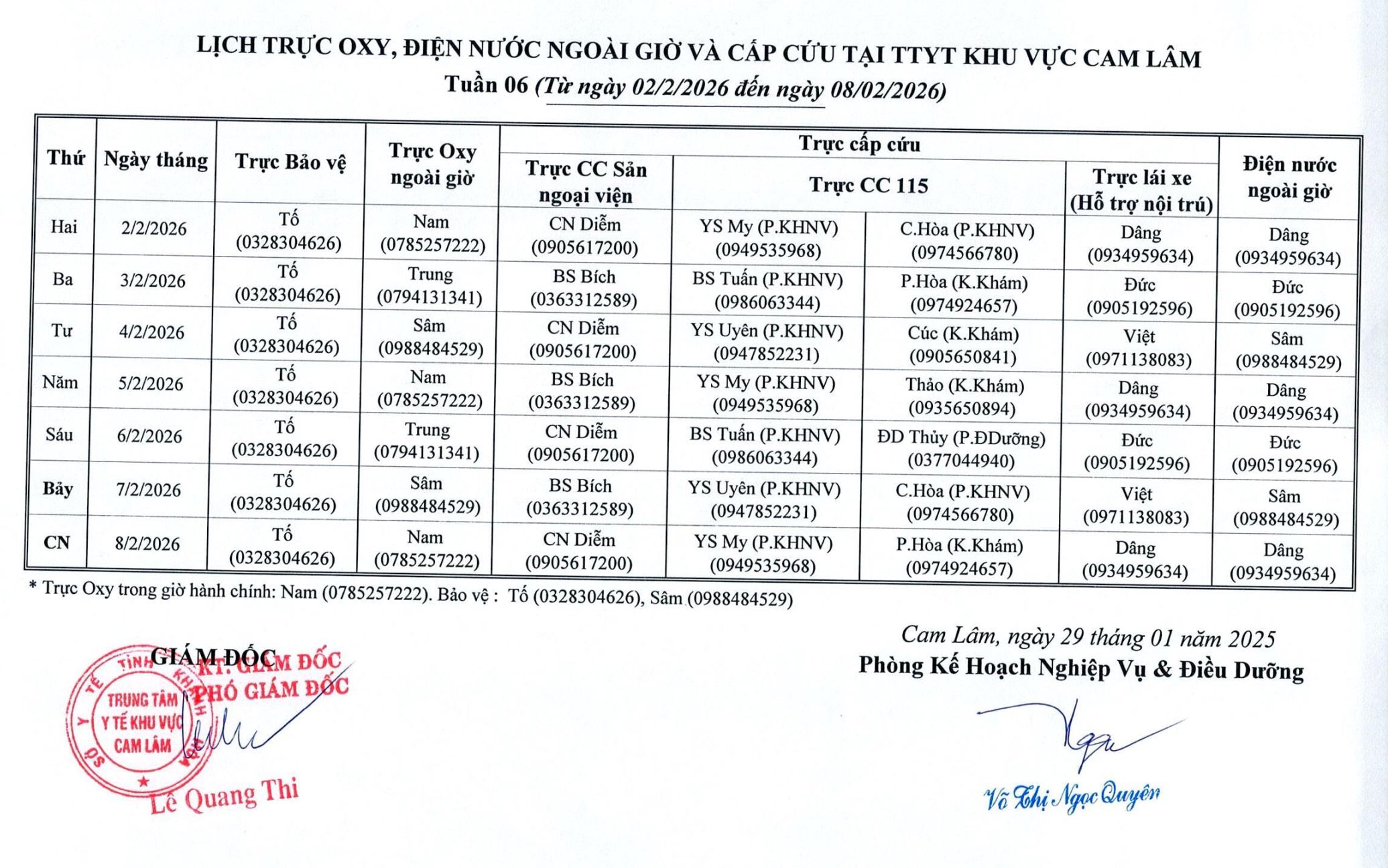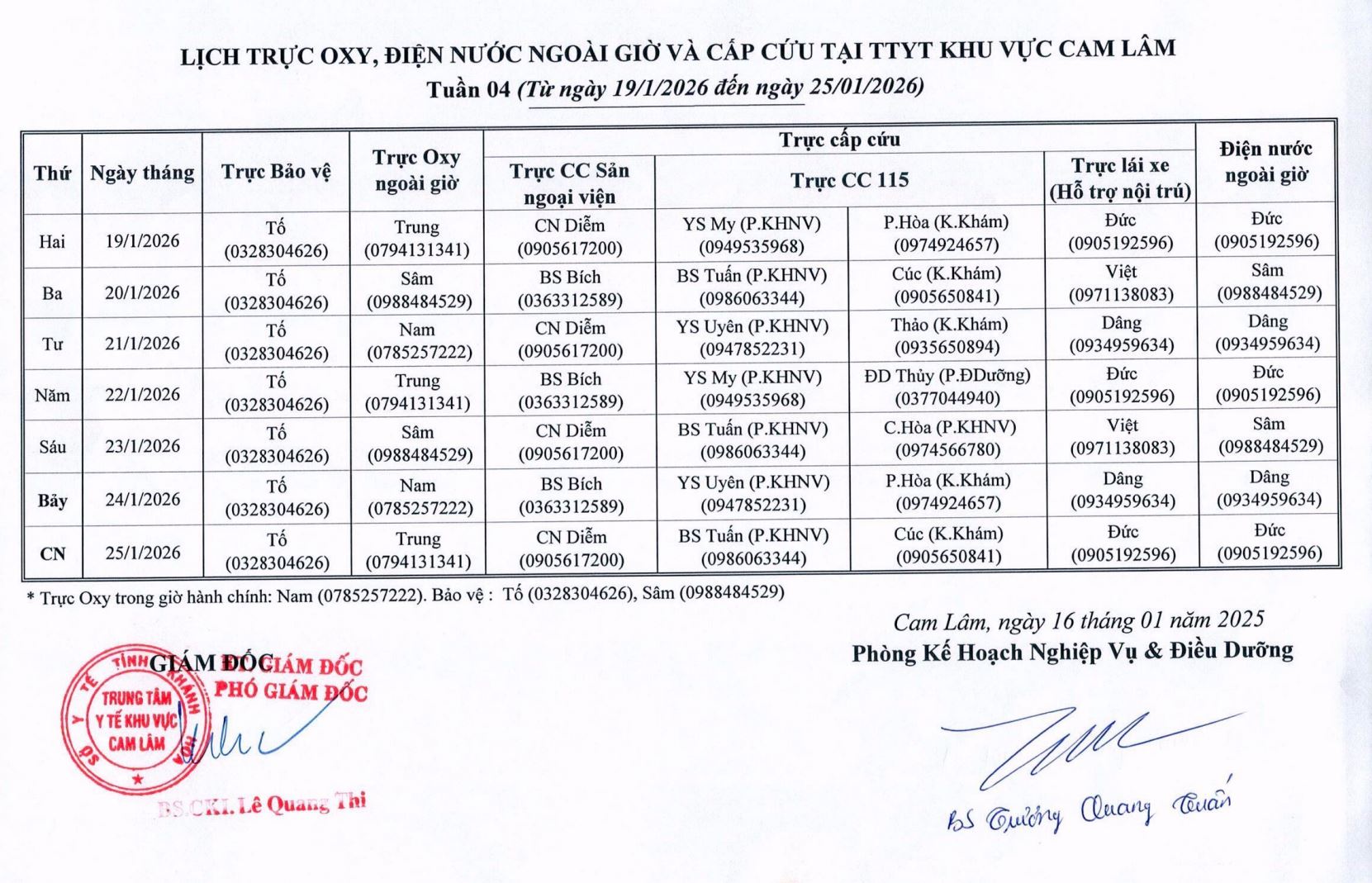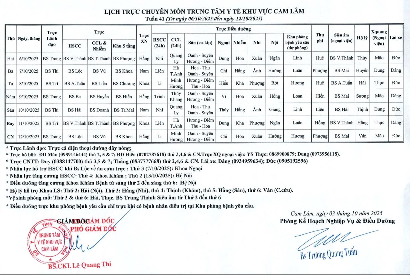 Lịch trực chuyên môn | TTYT Cam Lâm