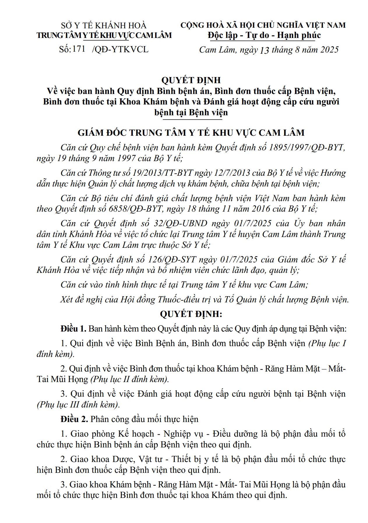 QUYẾT ĐỊNH Về việc ban hành Quy định Bình bệnh án, Bình đơn thuốc cấp Bệnh viện, Bình đơn thuốc tại Khoa Khám bệnh và Đánh giá hoạt động cấp cứu người bệnh tại Bệnh viện