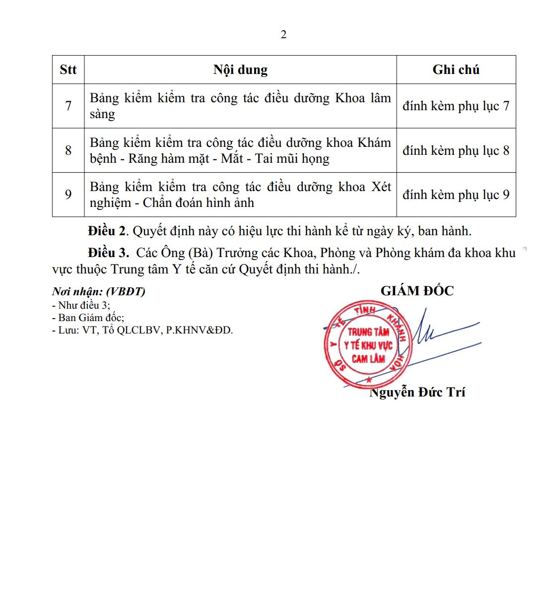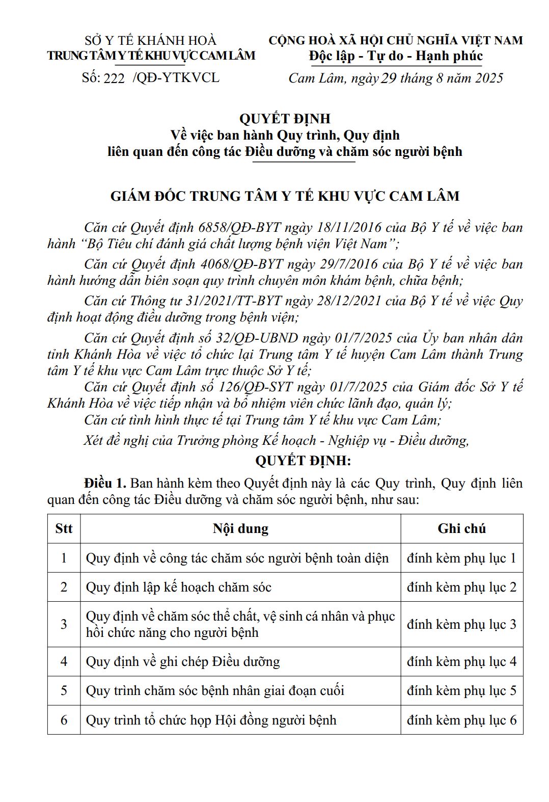 Quyết định ban hành Quy trình, Quy định liên quan công tác Điều dưỡng và chăm sóc người bệnh.signed.signed.signed