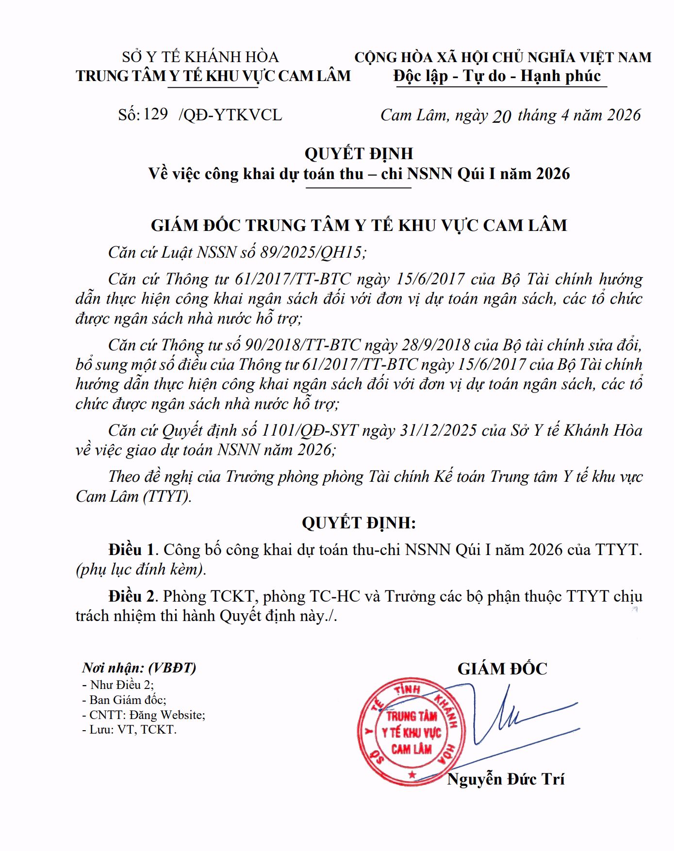 QUYẾT ĐỊNH Về việc công khai dự toán thu – chi NSNN Qúi I năm 2026 20/04/2026 0 5 FacebookTwitterPinterestWhatsApp QUYẾT ĐỊNH Về việc công khai dự toán thu – chi NSNN Qúi I năm 2026