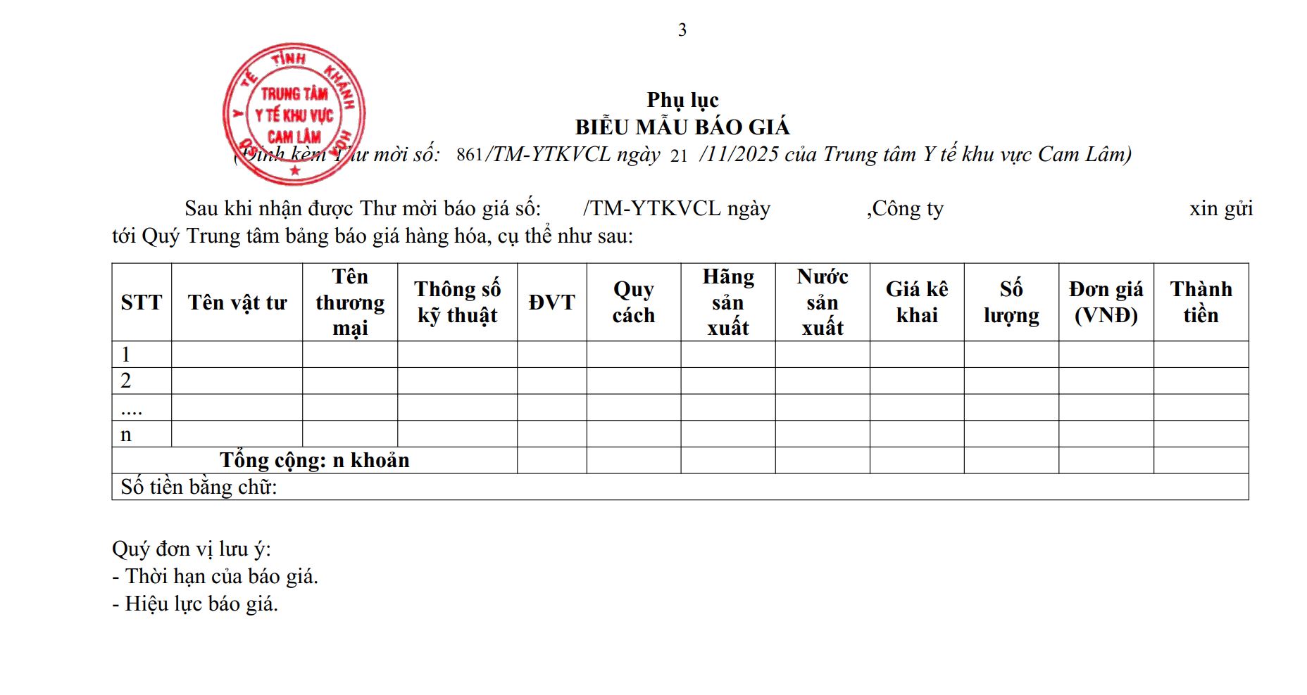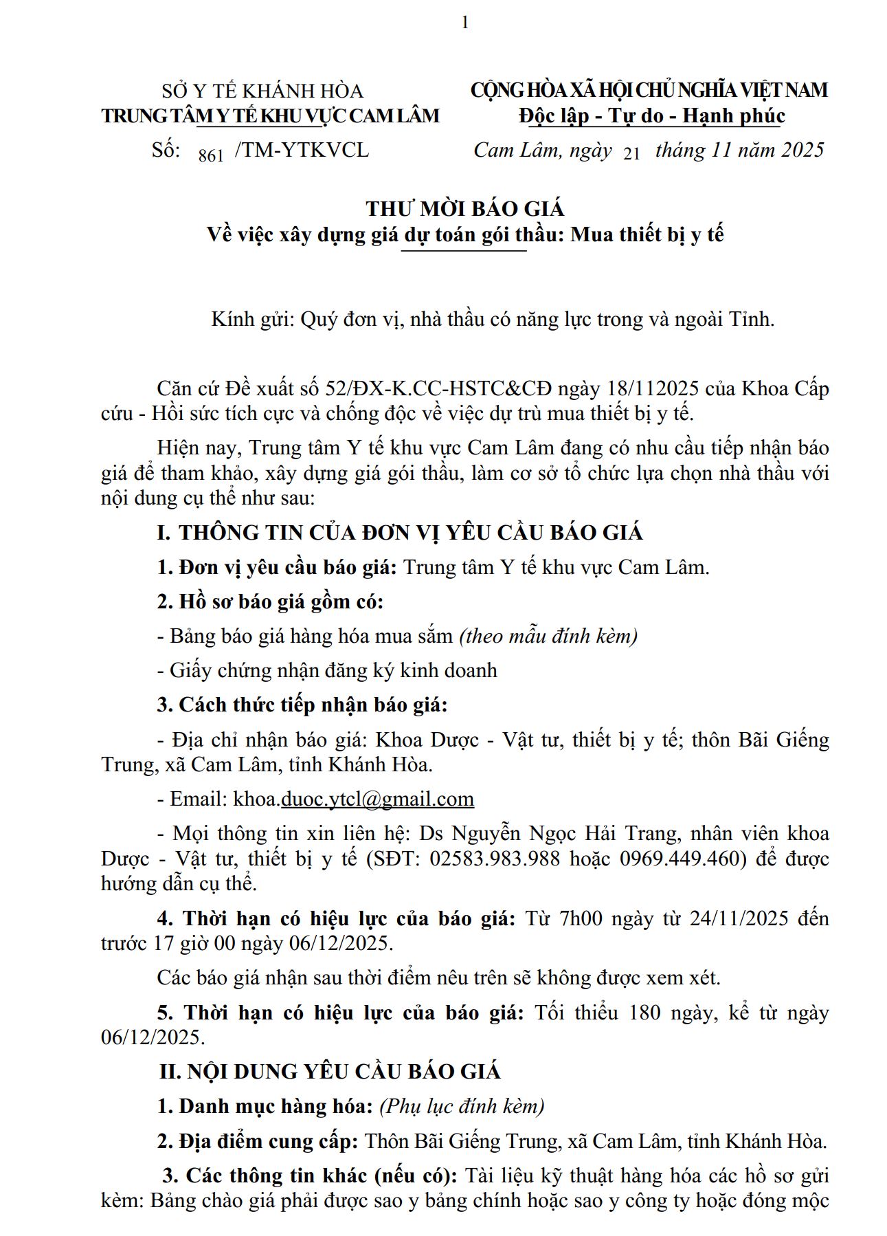 THƯ MỜI BÁO GIÁ Về việc xây dựng giá dự toán gói thầu: Mua thiết bị y tế 21/11/2025 0 16 FacebookTwitterPinterestWhatsApp THƯ MỜI BÁO GIÁ Về việc xây dựng giá dự toán gói thầu: Mua thiết bị y tế