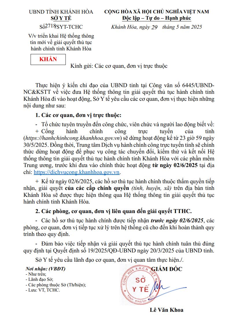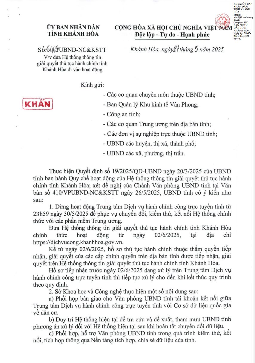 Về việc triển khai Hệ thống thông tin mới về giải quyết thủ tục hành chính tỉnh Khánh Hòa 29/05/2025 0 15 FacebookTwitterPinterestWhatsApp Về việc triển khai Hệ thống thông tin mới về giải quyết thủ tục hành chính tỉnh Khánh Hòa